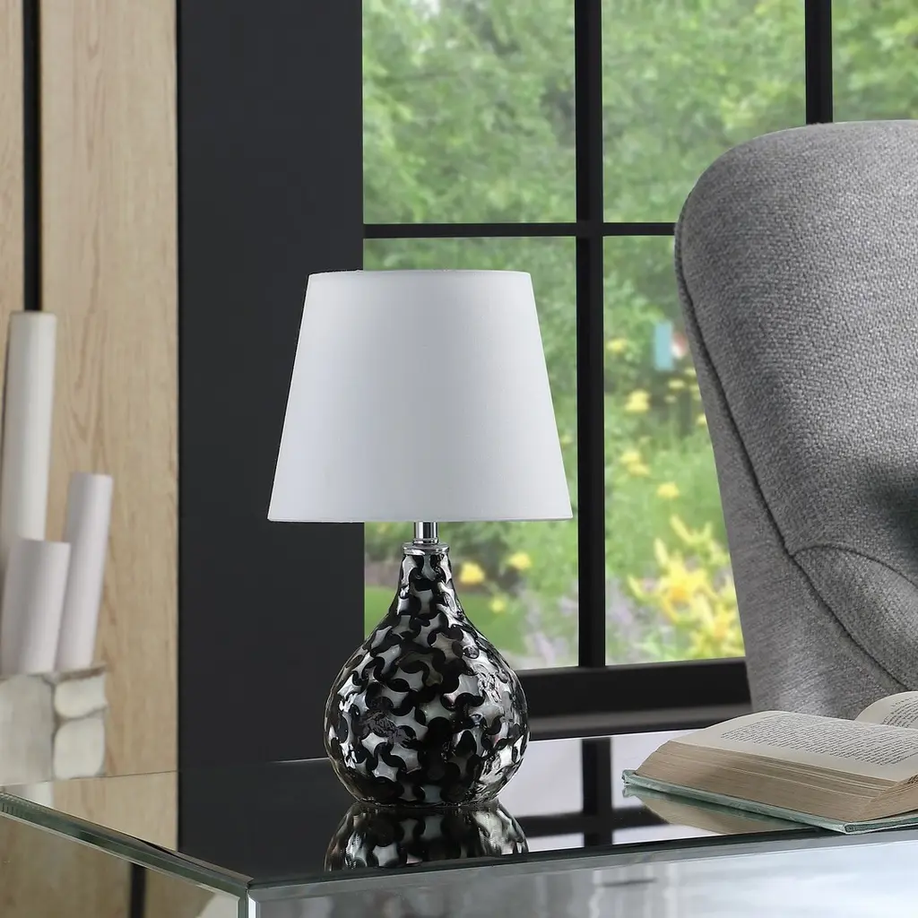 11.5" In Modern Black Seashell Swirl Pattern Mini Polyresin Table Lamp - Multicolor
