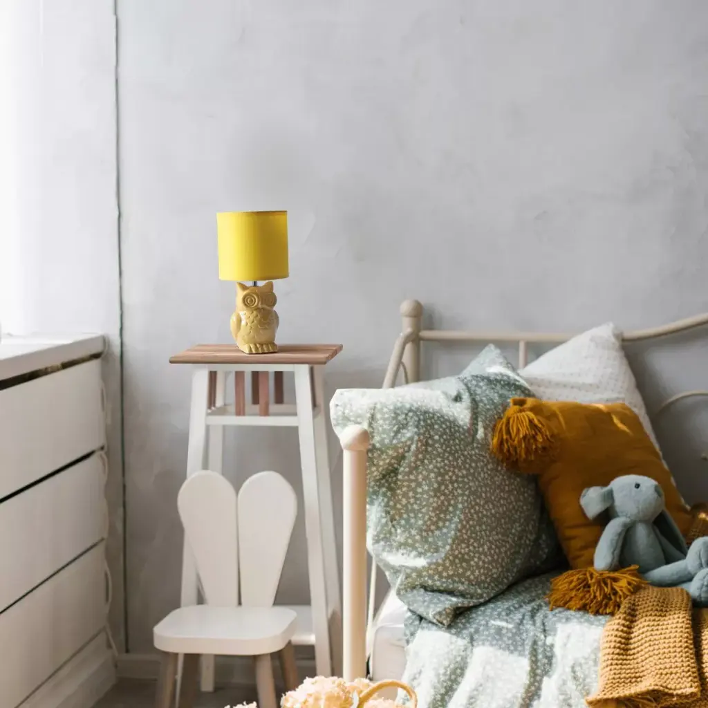 This fun owl shaped base is paired with a matching fabric drum shade and stands at just 12.8" in total height. It's a perfect fit in most areas and suited to light your space as needed. This lamp is a perfect piece to accent your decor, or add into your child's room or nursery!