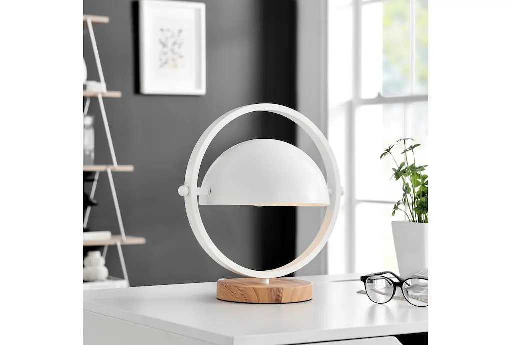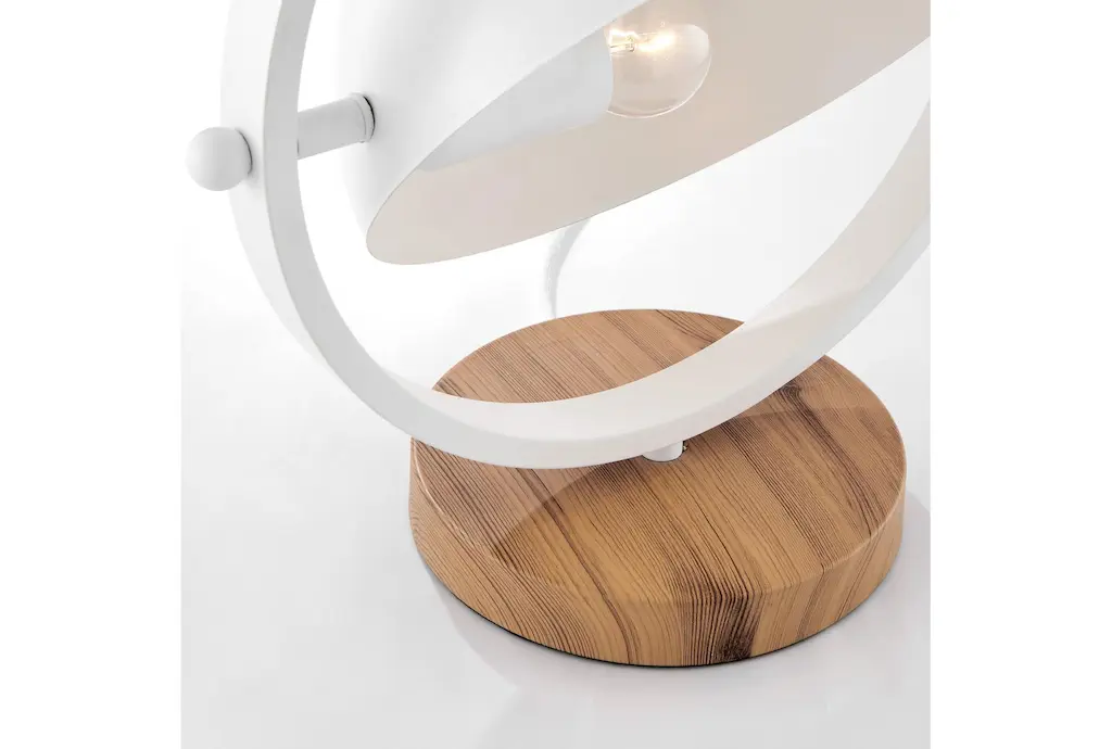 13 Inch White + Wood Metal Dome Armillary Adjustable Table Lamp