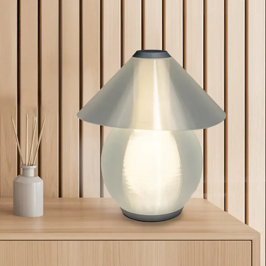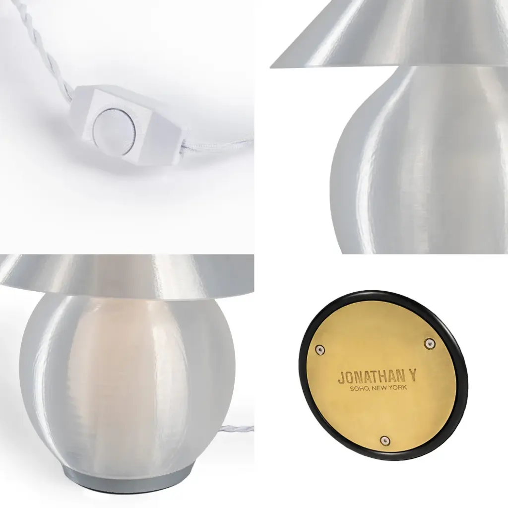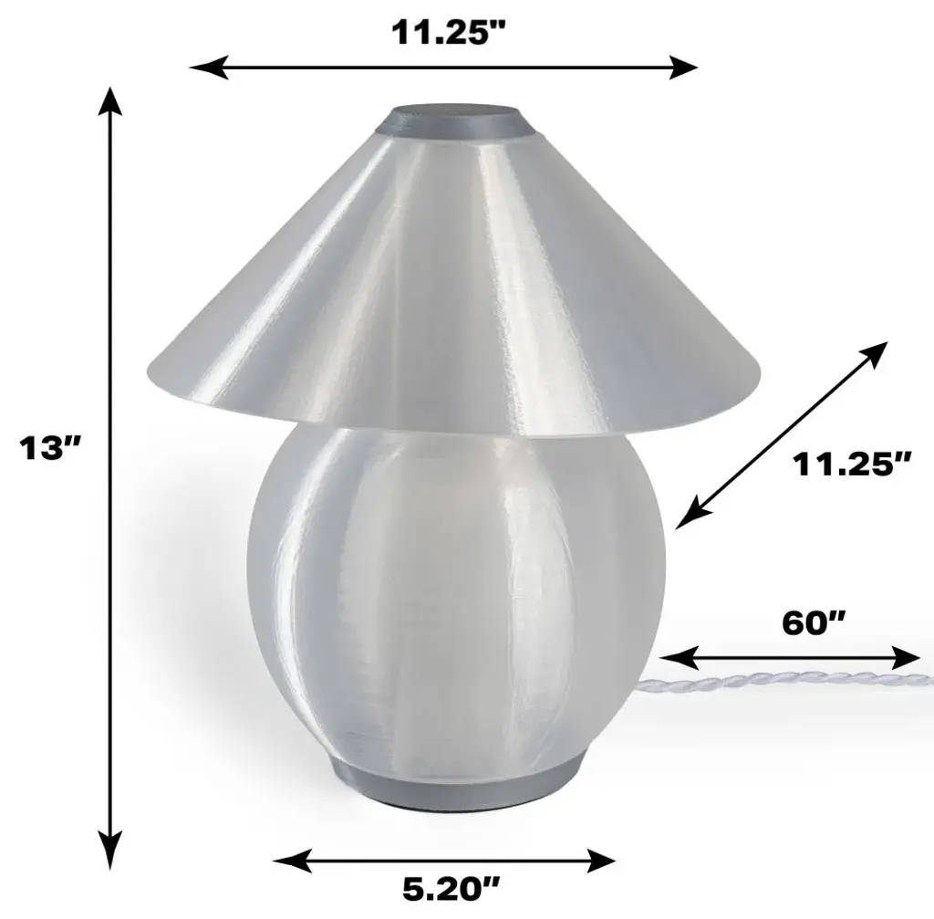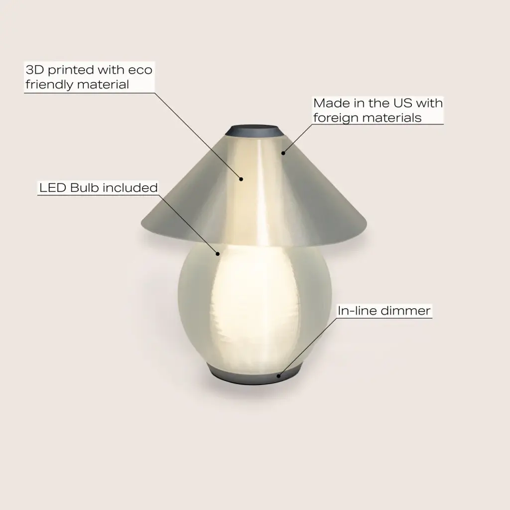 Mid-century Scandinavian style is the inspiration for our glowing accent lamp. The modern, 3D-printed design is made of eco-friendly material, and includes a built-in dimmer switch. You''ll love this versatile lamp for working, reading or as a night light in the living room, office, or bedroom.-The light smoke gray plastic diffuser base is topped with a matching cone shade-Quality touches include a braided silk-wrapped cord with an in-line switch and dimmable LED bulb-With its adjustable brightness settings, this Scandinavian accent lamp fits into any modern space-Eco-friendly 6W LED bulb included-Incandescent bulbs are not safe for 3D printed lamps-Color Temperature: 2700K-CRI: >80-Color: Light Smoke/Gray-Body Material: PLA Filament-Base Material: PLA Filament----Includes: One (1) lamp-Assembly Required-Lamp: 13 inches high x 11.25 inches wide x 11.25 inches deep-Shade: 12.38 inches high x 5.2 inches wide x 5.2 inches deepYou see a lamp.We see a decorative work of art.A perfectly curved shade casts a dramatic shadow on a floor. A silk cord you never want to hide. Compatible with LED lightbulbs: as easy on the environment as they are on the eyes. The JONATHAN Y Lighting collection considers every detail from impeccably sourced materials to designer styling. And our prices are so attractive, weeve transformed a functional necessity into a fashion accessory.JONATHAN Y Lighting - a fashion revolution in home decor.