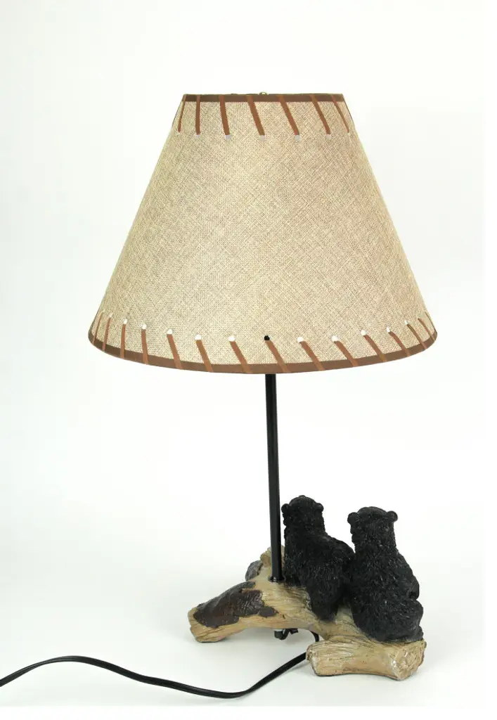 An Ivory faux leather shade wrapped in rawhide tops a leaping buck Deer lamp base. The accent lamp is finished in Antique Copper and is handcrafted in by Meyda artisans. UL Approved: YesHardwire or Plug: PlugBulb Quantity: Bulb Type: N/ABulb Wattage: N/ABulbs Included: No