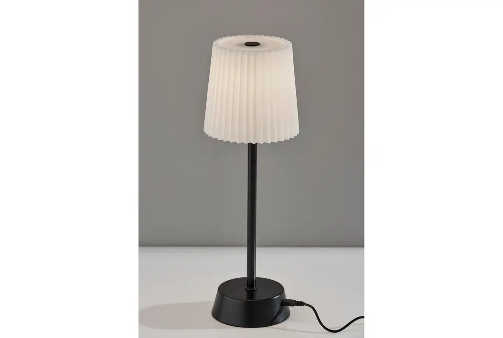 This 14" X 4" Bobby Black Metal Cordless LED Table Lamp is perfect for adding light to any room. Featuring a touch control system, this lamp is both versatile and functional. The sleek black metal design paired with a white shade makes it a stylish addition to your home.