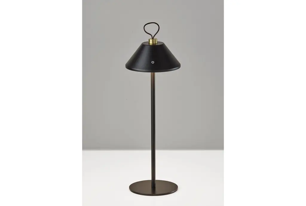 The 14" X 5" Danny Black & Antique Brass Metal LED Cordless Table Lamp is a versatile lighting solution for your home. It combines modern functionality with a touch of classic design, making it perfect for any dorm, living room, or family room. This lamp features touch control, making it easy to adjust the lighting to your preference.
