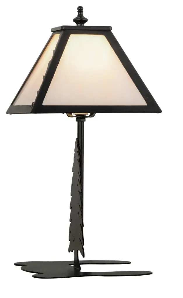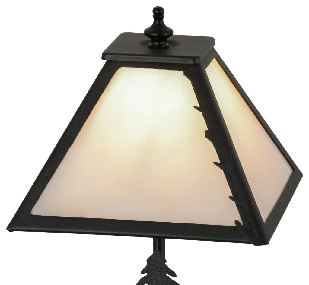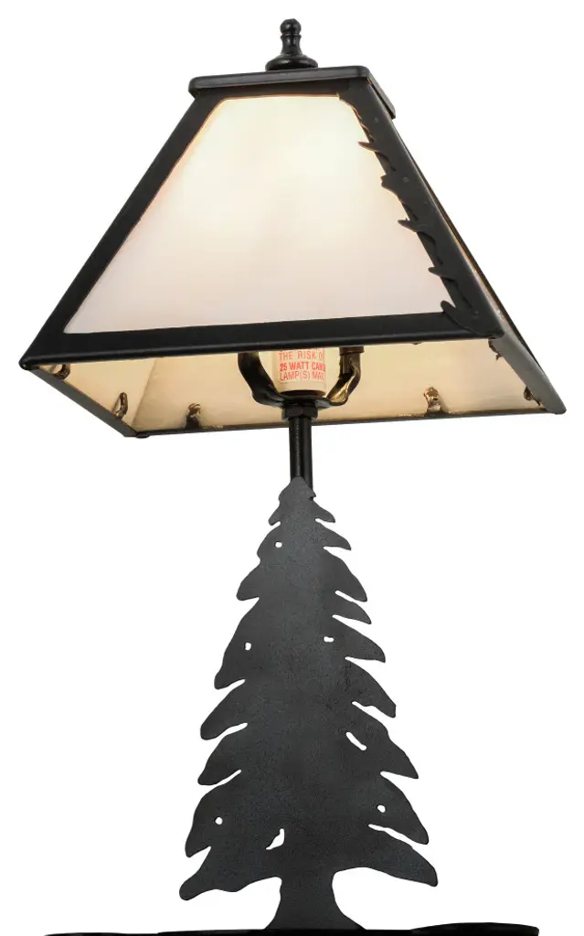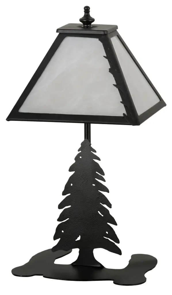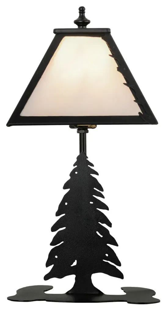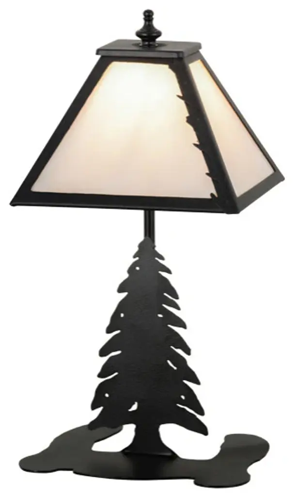 Capture the allure of rustic charm as a Tall Pine Tree highlights this Textured Black finished lamp base; which supports a stunning Whitestone Idalight shade. The lamp is handcrafted by Meyda artisans in the Yorkville; New York manufacturing facility at the foothills of the Adirondack Mountains. Custom colors; styles; sizes and dimmable energy efficient lamping options are available.