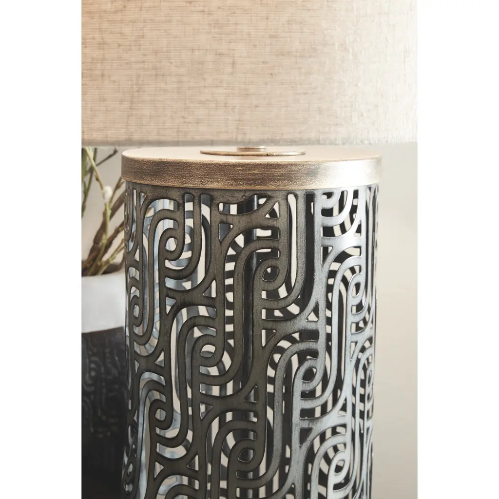 150 Watt Metal Body Table Lamp With Network Design, Gray And Beige - 29.38 H X 16.63 W X 16.63 L Inches - Gray And Beige
