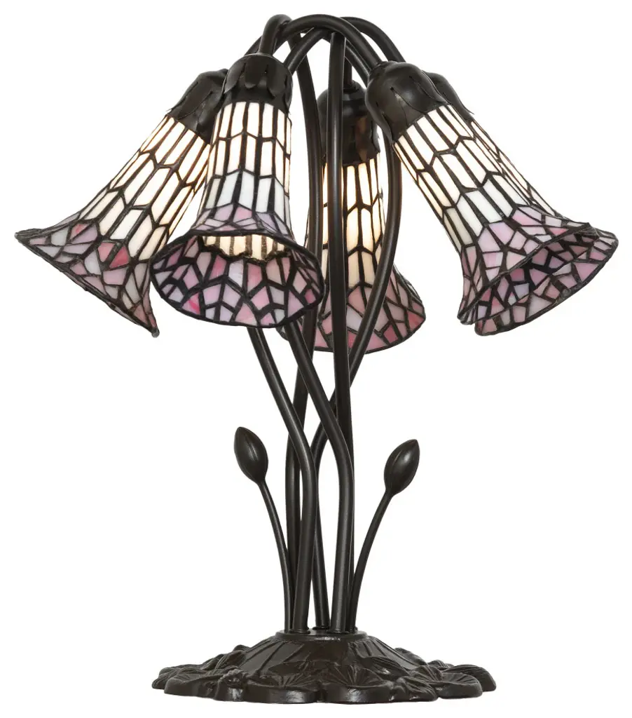 16" High Amber/purple Tiffany Pond Lily 5 Light Table Lamp
