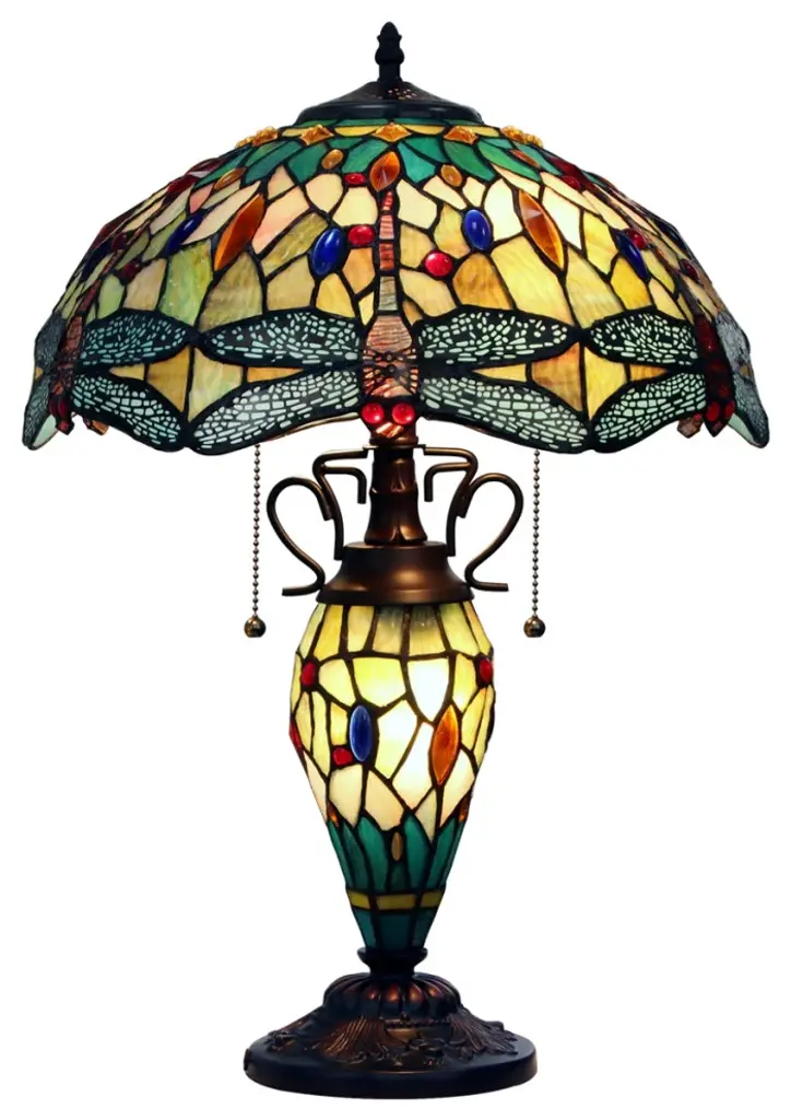 16" High Tiffany Hanginghead Dragonfly Table Lamp