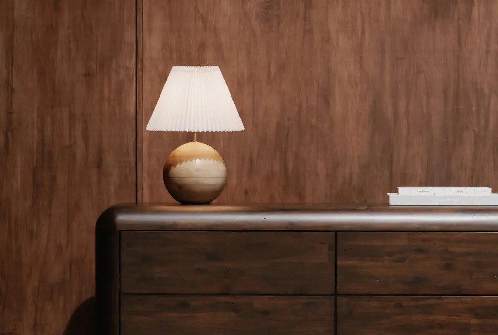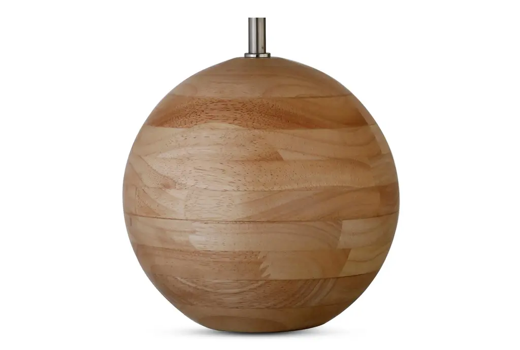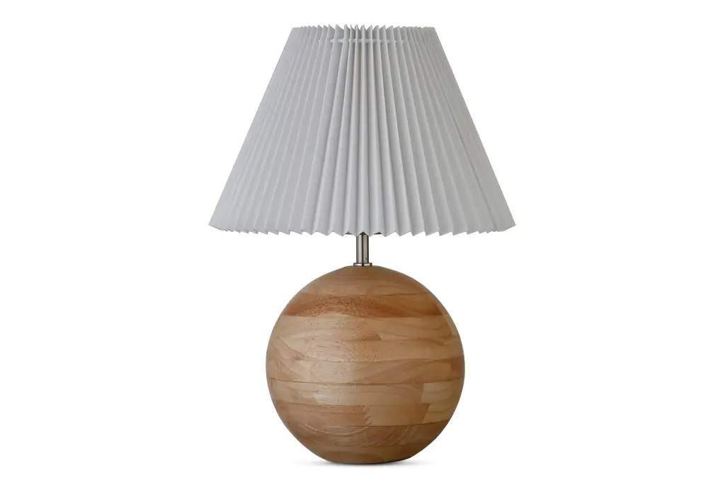 16" Natural Wood Sphere And White Pleated Shade Table Lamp