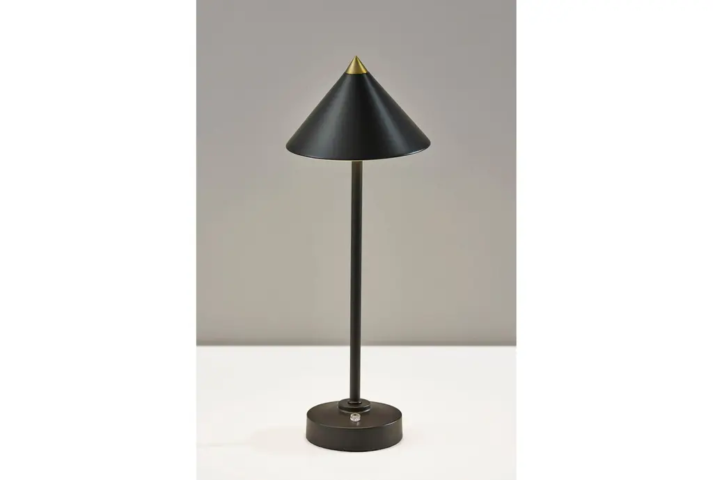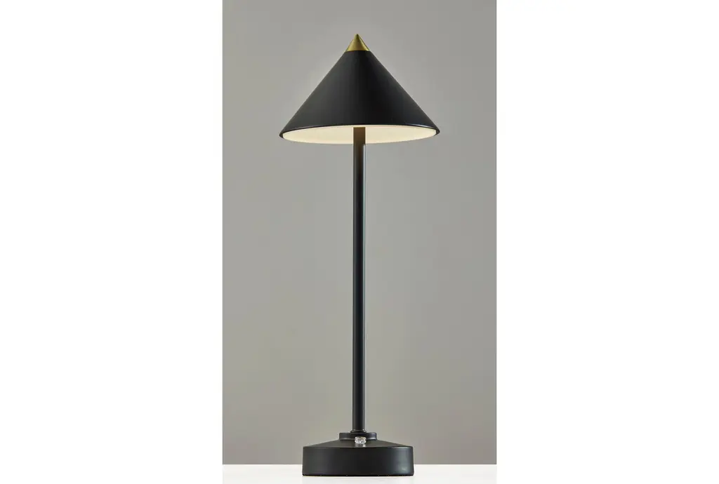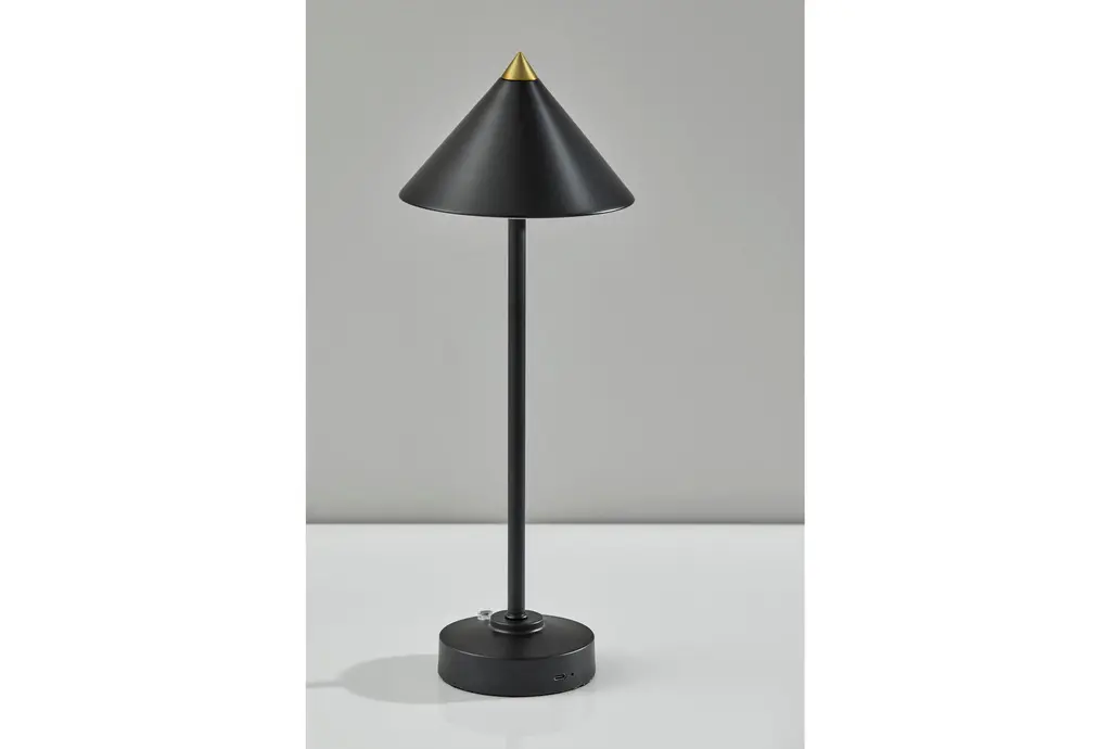 The 16" X 6" Ritchie Black Metal LED Cordless Table Lamp is a versatile lighting solution perfect for any dorm or living space. With its sleek black metal design and touch control feature, this lamp combines functionality with modern style. Ideal for both indoor and outdoor use, this weather-resistant lamp ensures convenience and durability.