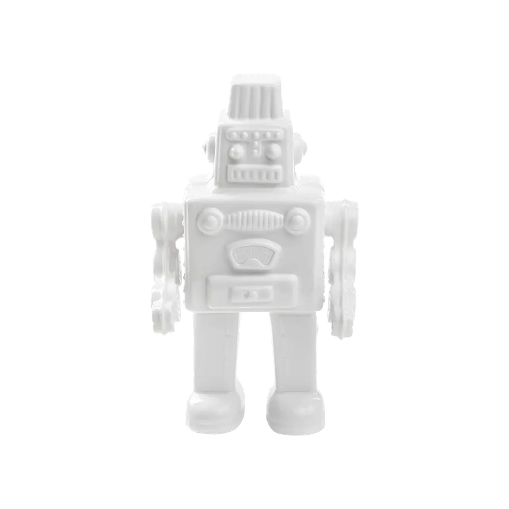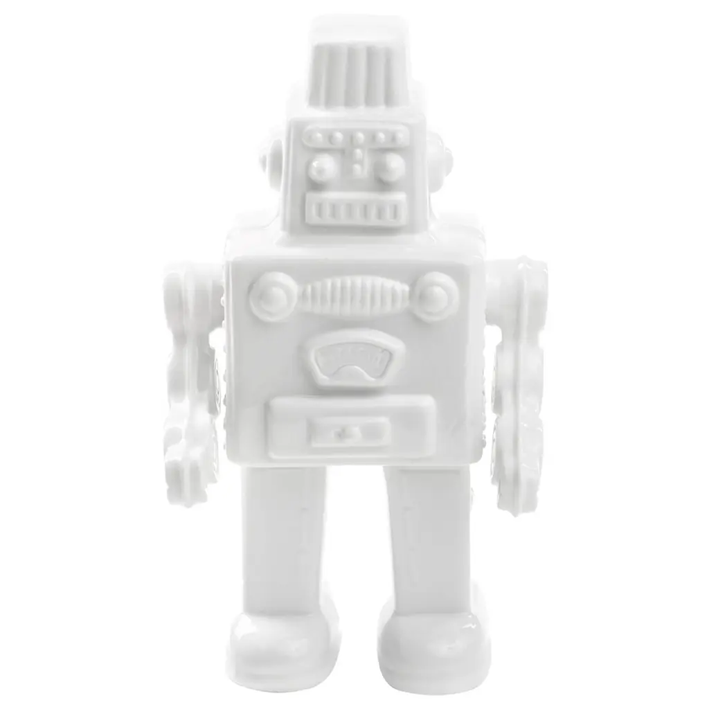Retro charm meets modern lighting in the 17" Robot Table Lamp. Designed in antique silver, the detailed polyresin base mimics a vintage toy robot, adding a playful yet nostalgic touch to any space. A gray tapered fabric shade softens the light, creating a cozy and inviting glow. Perfect for kids'' rooms, offices, or eclectic interiors, this lamp blends creativity with everyday functionality.Features• Available in a set of 2 for a complete and cohesive ensemble• High-quality construction ensures durability and stability at all times• Artistic design easily elevates various spaces and bedside tables• Provides ideal illumination for work, study, or playDimensions:Table Lamp• Assembled Product: 4 inches wide x 4 inches deep x 17 inches high