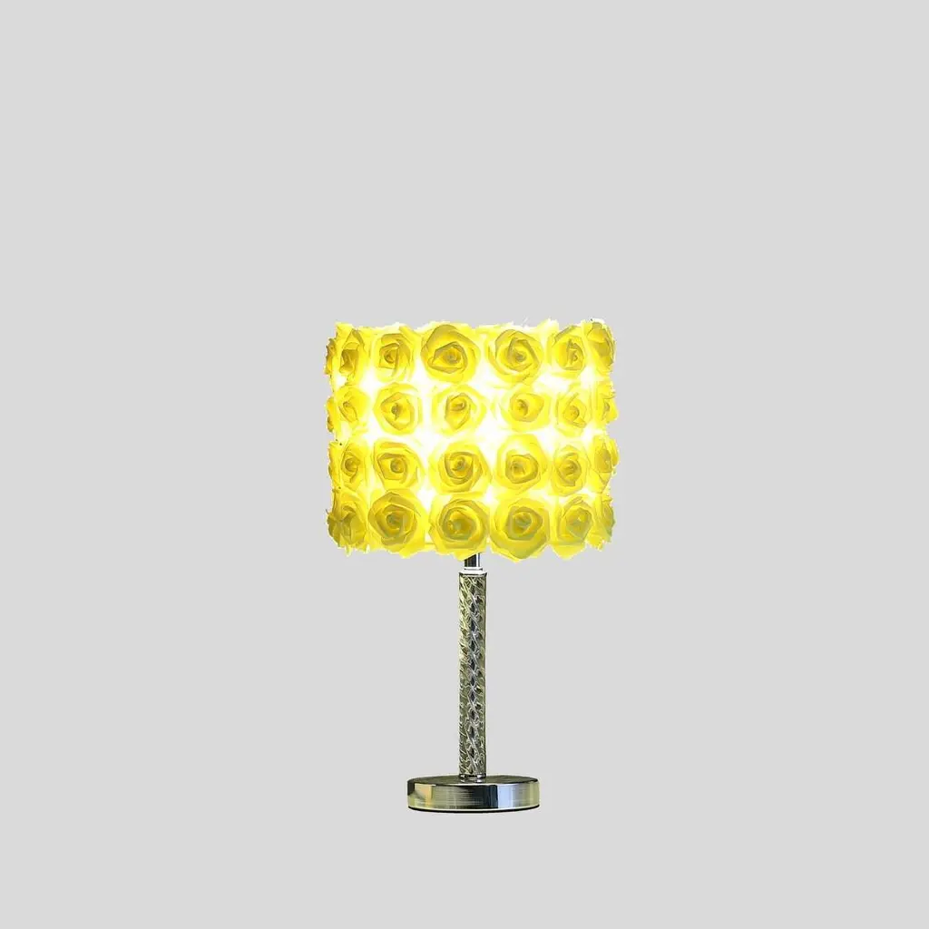 18.25" Yellow Roses In Bloom Acrylic / Metal Table Lamp - Multicolor