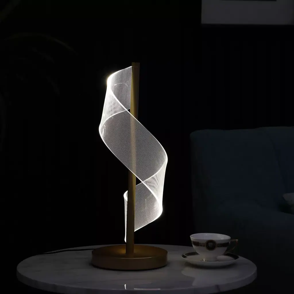 Modern "S" Curved LED design with a brushed gold aluminum pole stand gives you a simple and unique visual impression. 18.75" Dinamo Table Lamp has a stable soft light creating a comfortable atmosphere, bringing additional life and beauty to the silhouette making your house urbanized and modern. It's not only a cool table lamp but also an artwork showpiece. A spiral table lamp is an ideal decoration for a bedroom, living room, office, corridor, bedside table, or bedside night light. Compact and special design is suitable for multiple environments. This bedside lamp built-in wave-shaped LED boards and made from high quality metal with a gold finish, gives you a simple and unique visual impression and bring a stylish look and glaze surface for your house.