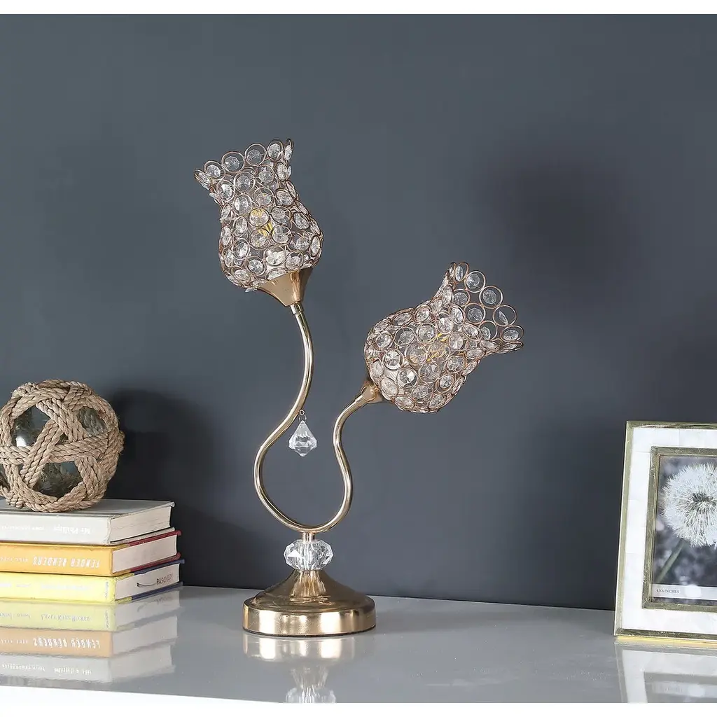 18.75" Rose Gold 2-Floral Trumpet Glam Metal Table Lamp - Gold