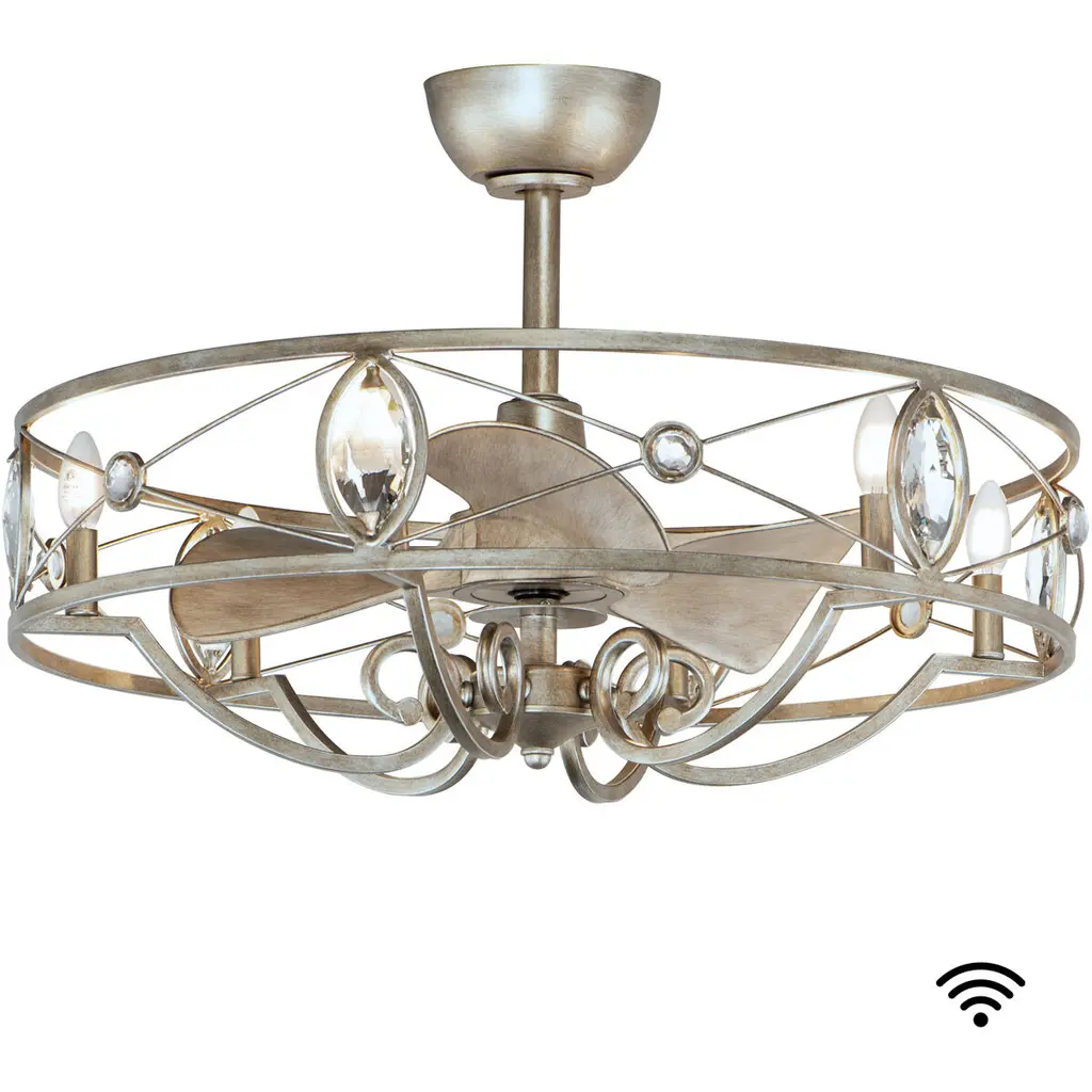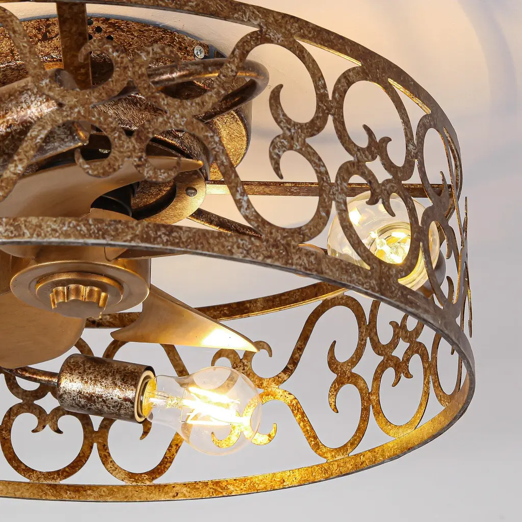 18 Inch Vintage Distressed Golden Industrial Flush Mount Ceiling Fan With Light App And Remote Control - Golden