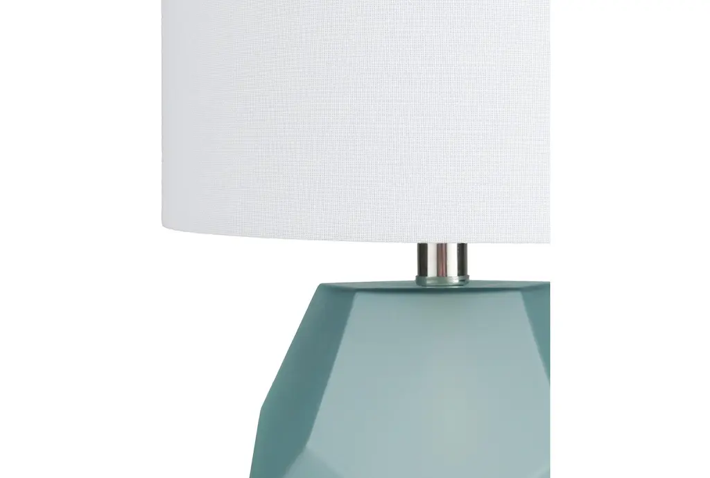 18" Sky Blue Frosted Glass Geometric Table Lamp By Surya