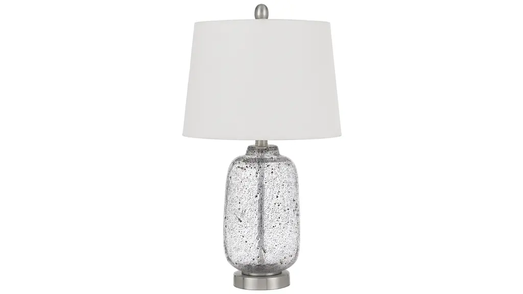 19.5" Mirror Glass Mosaic Polyresin Table Lamp Silver/chrome - Ore International: Modern Cone-shaped Linen Shade, Ul Listed