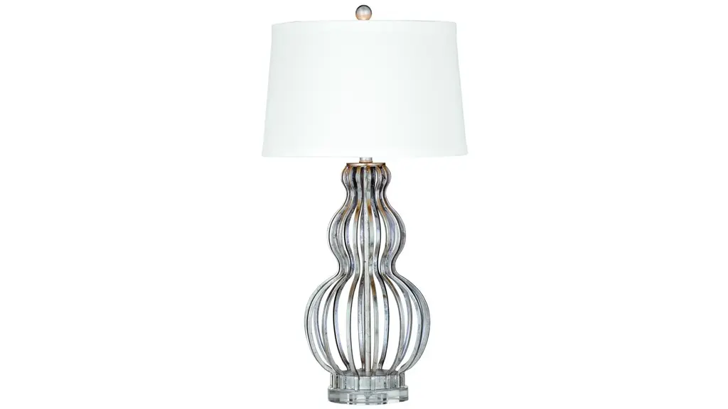 Bold curves define the silhouette of this white mosaic genie table lamp with a crisp white drum shade. Indulge in an updated twist on retro design with this fashionable genie accent table lamp. Cool textured effects offer an artisan quality to this contemporary concrete accent table lamp. This decadent lamp invokes a bit of nostalgia from the 1960s, yet pads its overall aesthetic with sleek modern beauty. This exquisite lamp becomes a focal point in any modern or transitional space. offers a perfect complement to colorful or monotone decor schemes. Its shapely base and metal accents stand out with a crisp white fabric drum shade. Choose this accent table lamp for a sophisticated look.