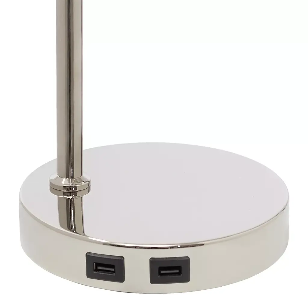 19.5" Quigley Silver Drum Shade Table Lamp - River Of Goods: Chrome-finish, Usb Ports, Ul Listed