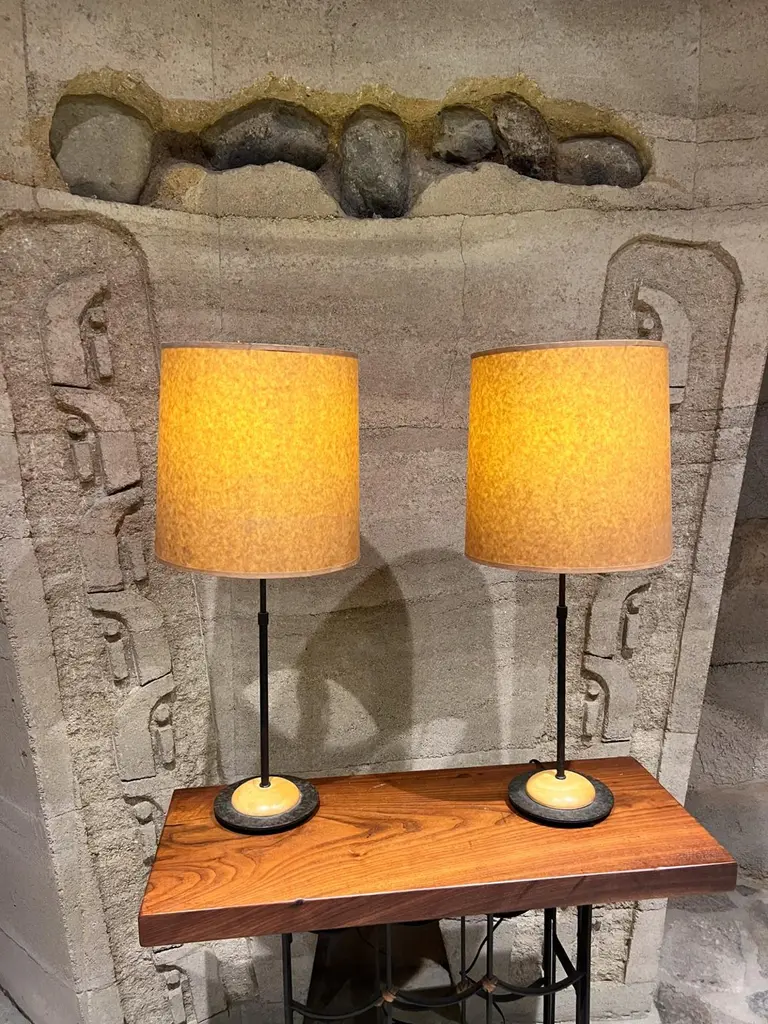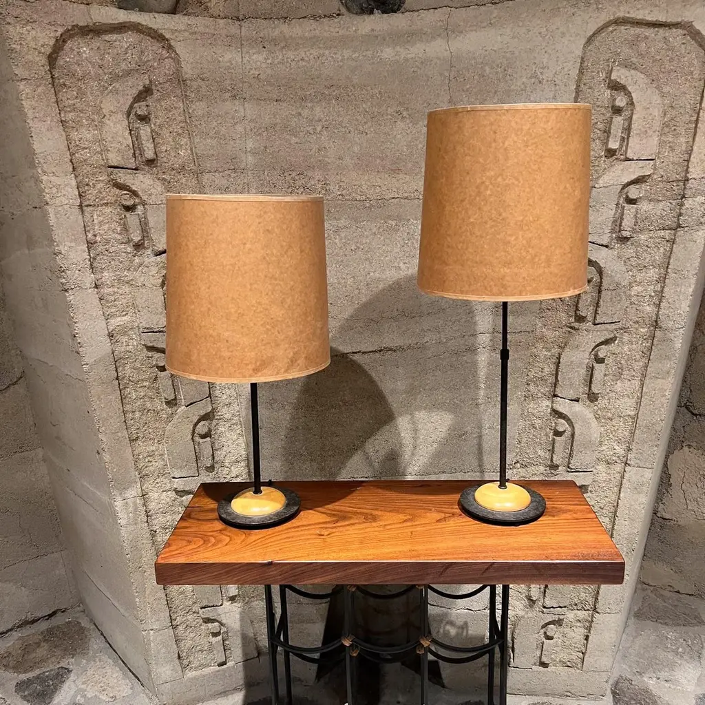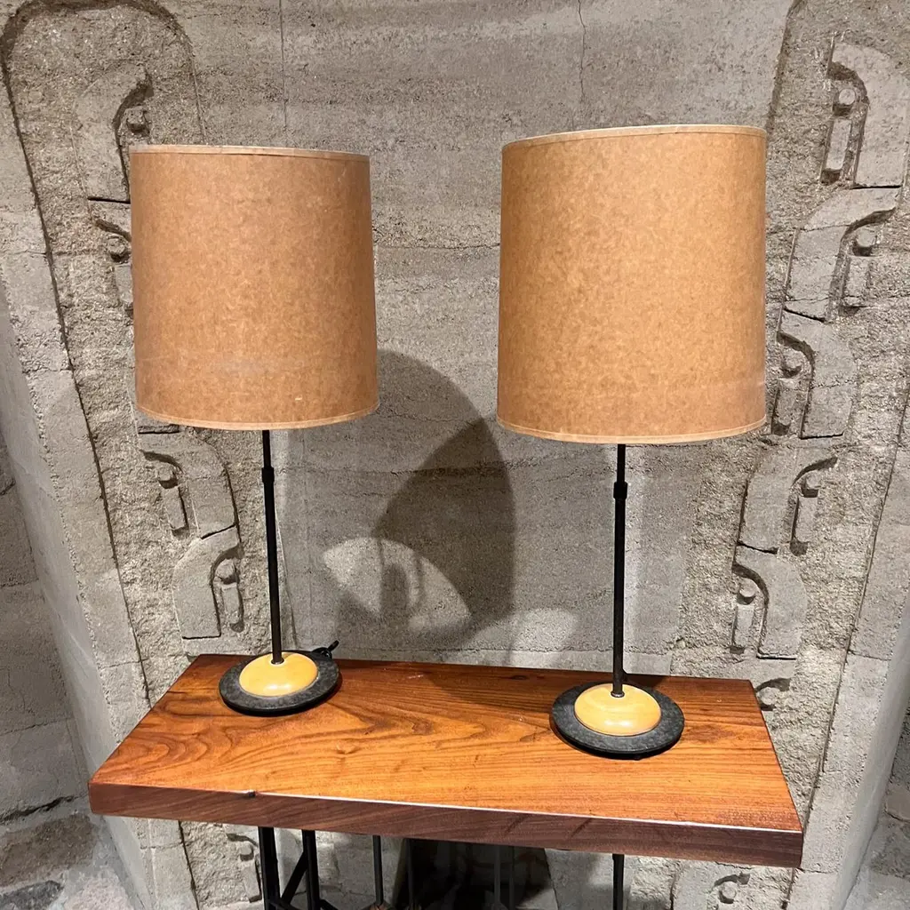 1950s Mid-Century Modern Sputnik Atomic Table Lamp Pair15 h at shortest 23.25 at tallest to socket x 6.5 diameterOriginal preowned condition unrestored.No shades are included.Refer to images.