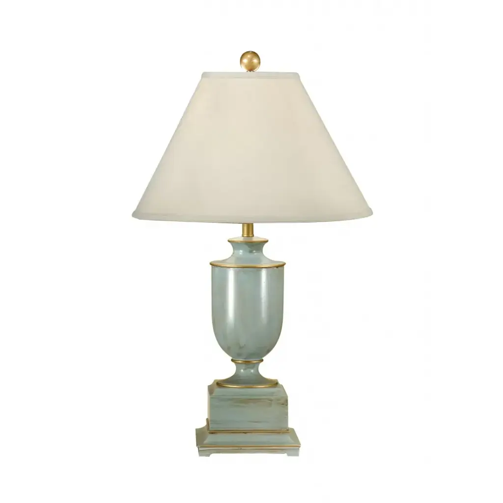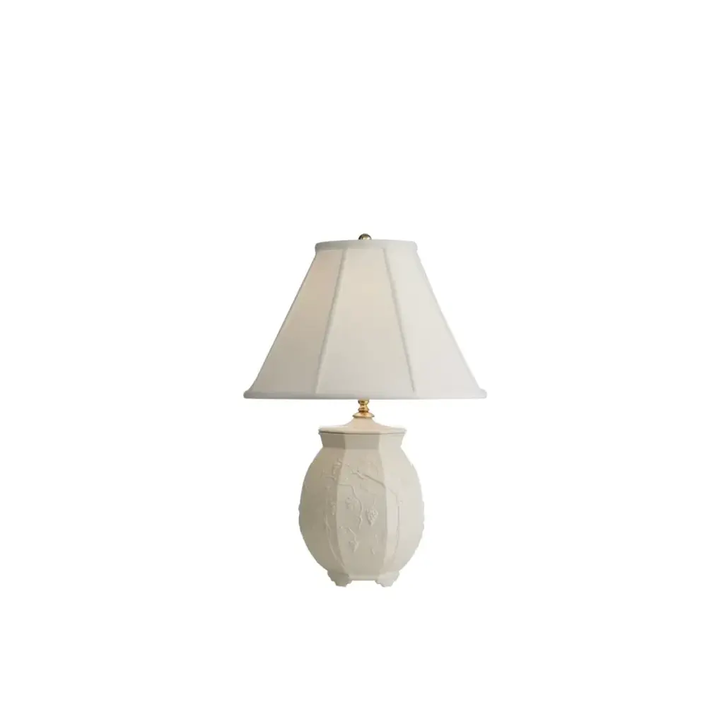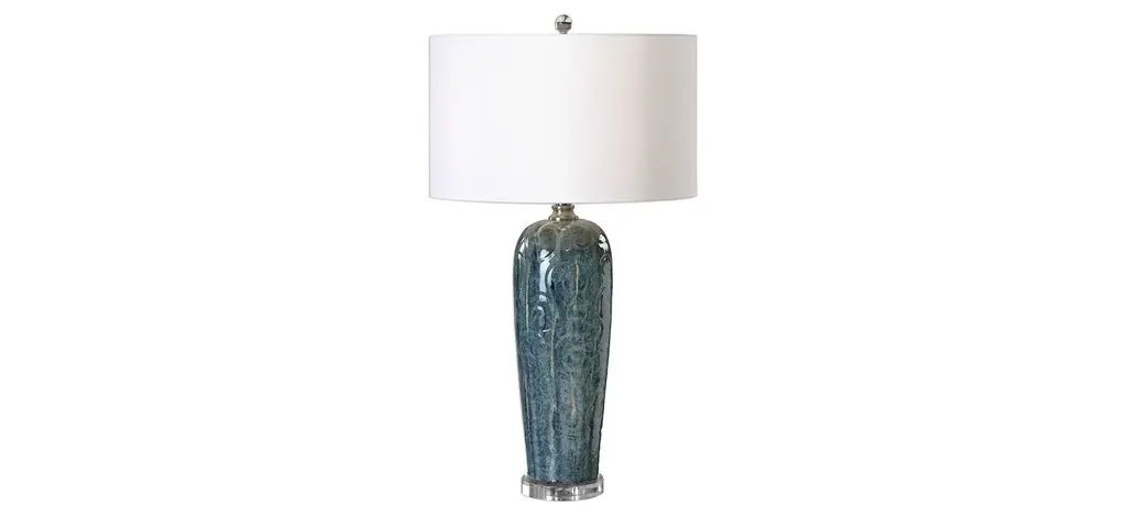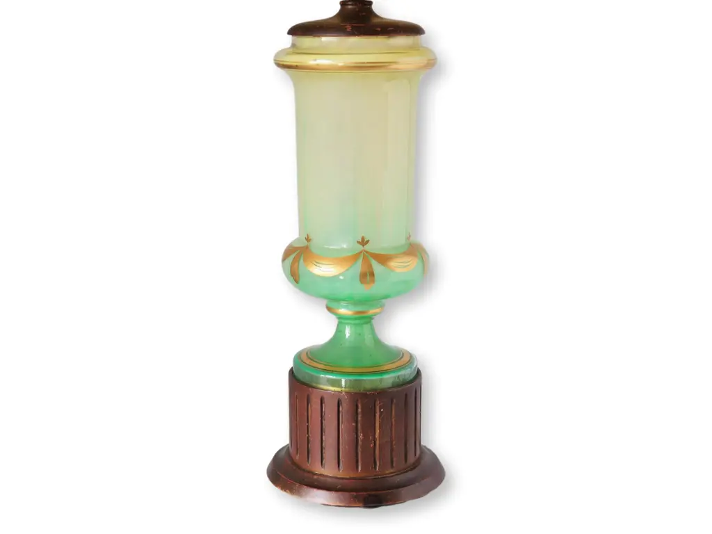 Large midcentury Bohemian glass table lamp with the shade with which it was found. Completely refitted with best quality hardware and cord. It is a large piece, 42" to top of shade.