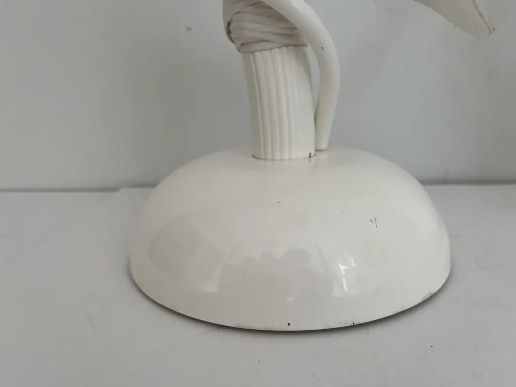 Oversize pair of 1970s leaf and vine lamps from the Miami Eden Roc Hotel featuring sinuous creamy white incised resin vines and leaves with wrapped bamboo-motif details and dramatic two-bulb tops on the original weighted bases. New sockets and repaired switches for high and low level light settings with original 18'L cords. Base to socket, 27"H. Shade shown for display only, 19"W x 11.5"H. Scuffs, light patina to the finish.