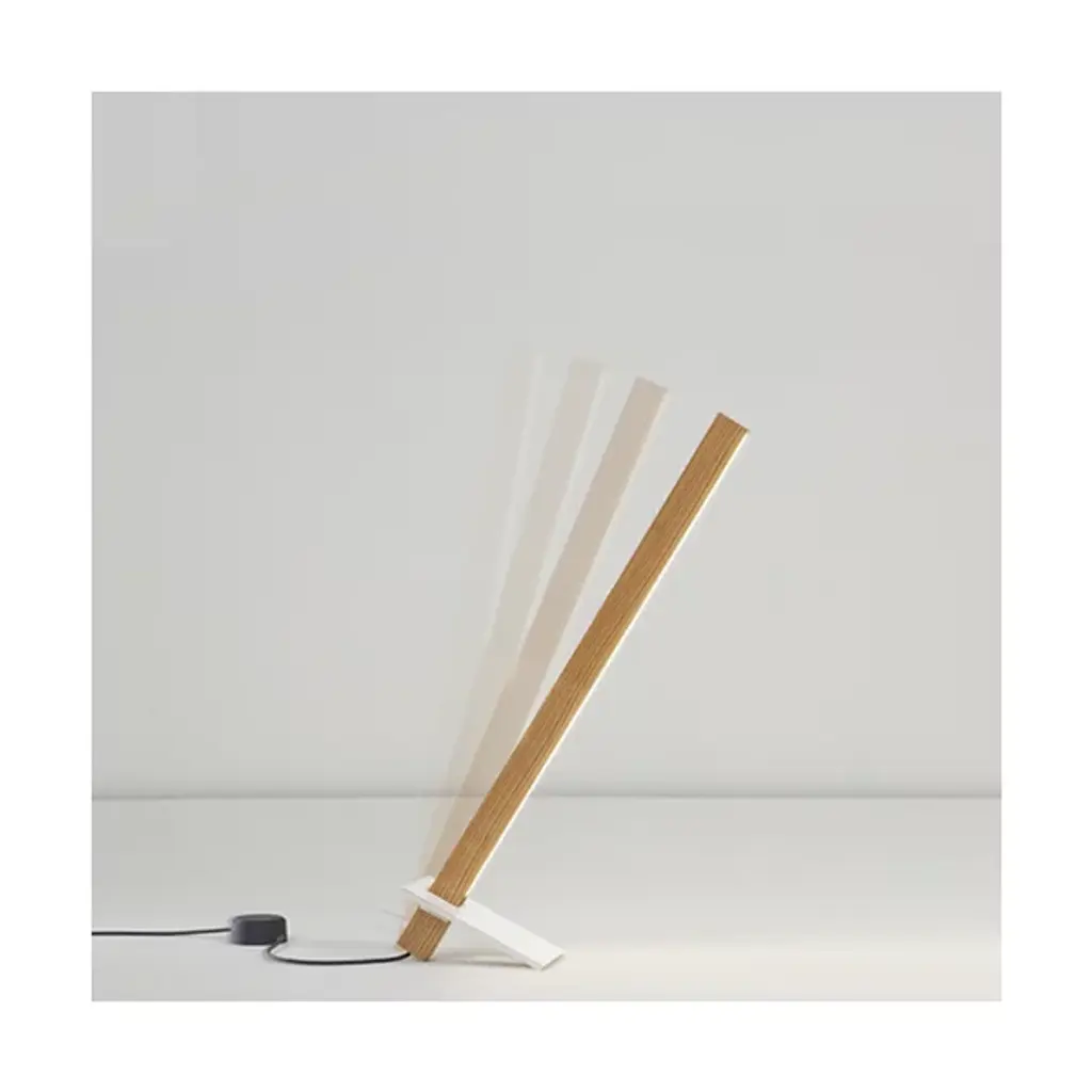 Minimal design lends highly functional illumination with the 2 Foot Torch LED Table Lamp by Stickbulb. Two main components comprise this petite lamp: a wooden beam with integrated energy-efficient LED light, and a rectangular steel base. The steel base allows the beam to be angled at various degrees or reversed for indirect light, allowing for extra adaptability. Each wooden beam is sustainably sourced from easily recyclable material and handcrafted in New York for an environmentally-friendly and smartly designed reading light.