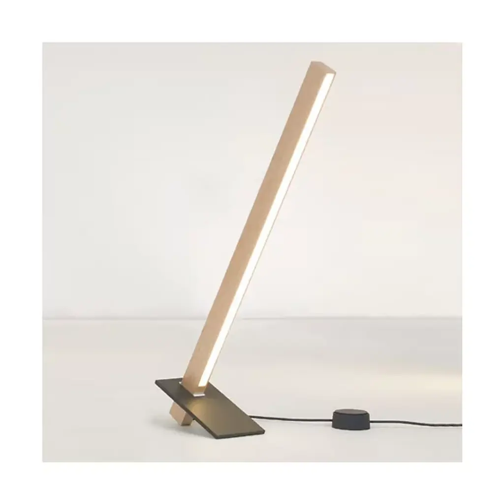 Minimal design lends highly functional illumination with the 2 Foot Torch LED Table Lamp by Stickbulb. Two main components comprise this petite lamp: a wooden beam with integrated energy-efficient LED light, and a rectangular steel base. The steel base allows the beam to be angled at various degrees or reversed for indirect light, allowing for extra adaptability. Each wooden beam is sustainably sourced from easily recyclable material and handcrafted in New York for an environmentally-friendly and smartly designed reading light.