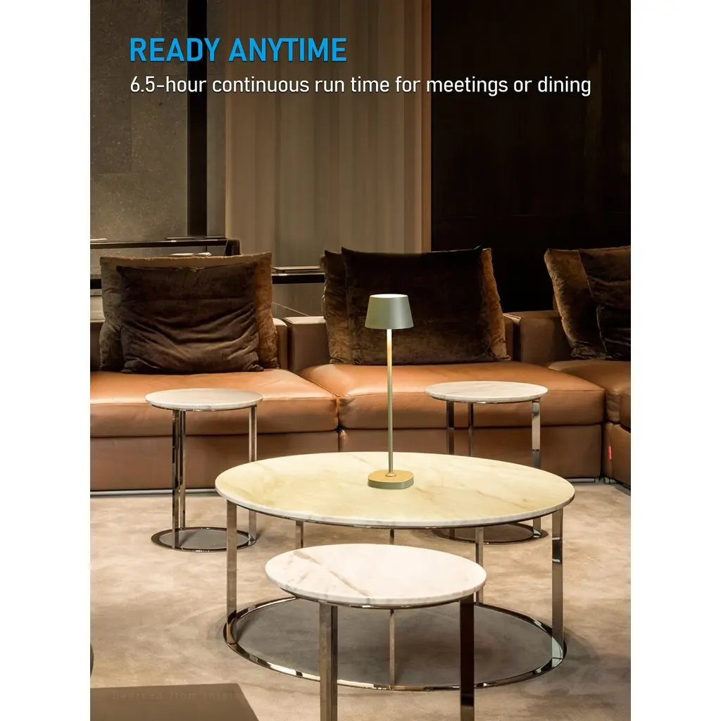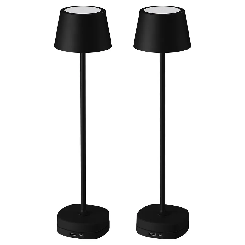 Modern& Elegant DesignThe table lamp features a modern classic minimalist design, with a touch switch to avoid protruding button switches, enhancing its elegant appearance. The primary material is high-quality aluminum. It uses a matte coating process to resist scratches.Suitable for Various Commercial OccasionsIn the hotel industry, it can be used as an additional light source in rooms, flexibly placed on bedside tables or desks. In restaurants, cafes, bars, and similar venues, it can serve as decorative lighting while also providing light for customers to read menus.In art galleries, museums, or exhibitions, it can be used to highlight specific artworks or exhibits, and it is easy to store and portable for charging.Multifunctional Charging BaseThe charging base of the desk lamp is equipped with a built-in USB port, designed specifically for modern multifunctional living. Whether it's a phone, tablet, or other electronic devices, simply plug it in to charge your devices while you read or work.Portable& Brightness DimmableIn outdoor settings such as camping or outdoor parties, its portability and IP54 waterproof features make it an ideal choice for lighting. The desk lamp's brightness settings are extremely flexible, capable of meeting various environments and needs. Whether it's for a comfortable evening of reading or a moment that requires intense concentration, it provides just the right amount of light. You can easily adjust the brightness levels of the lamp to protect your eyesight and create the optimal lighting atmosphere.NoteThe desk lamp cannot be used while charging. Once fully charged, they provide up to 6.5 hours of continuous illumination.SpecificationsWattage: 3WVoltage: 5VLuminous flux: 200lmCCT: 2700K soft whiteWaterproof rating: IP54 waterproof