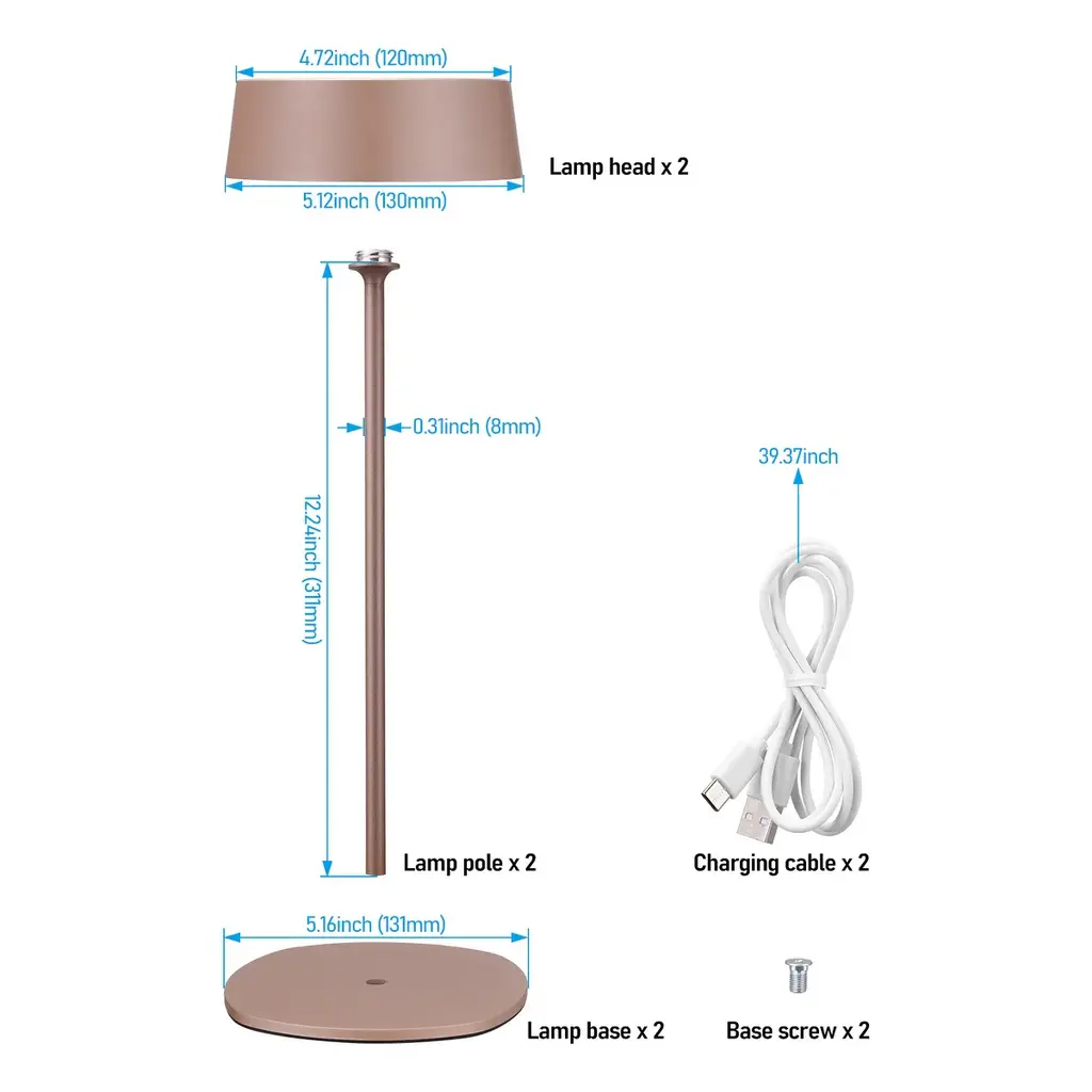 Modern& Elegant DesignThe table lamp features a modern classic minimalist design, with a touch switch to avoid protruding button switches, enhancing its elegant appearance. Its matte coating technology resists scratches, making it easier to clean and leaving no stain marks on the lamp body surface.Suitable for Various Residential OccasionsThe lamp gradually brightening and dimming can prevent the discomfort of sudden bright light, making it ideal for use on a bedside table for nighttime illumination. With an IP54 water resistance rating, it can meet most outdoor needs, such as in gazebos, balconies, camping, outdoor parties, and more. In the event of a sudden power outage or natural disaster, the rechargeable lamp can serve as an emergency lighting device to ensure the safety and basic living needs of family members. Portable& Brightness DimmableThe rechargeable lamp can be conveniently moved to any desired location to provide auxiliary lighting for family gatherings, watching TV, and other activities. The desk lamp's brightness settings are extremely flexible, capable of meeting various environments and needs. Whether it's for a comfortable evening of reading or a moment that requires intense concentration, it provides just the right amount of light. You can easily adjust the brightness levels of the lamp to protect your eyesight and create the optimal lighting atmosphere.NoteThe desk lamp cannot be used while charging. Please use it when fully charged, which takes approximately 5.5 hours to achieve.SpecificationsWattage: 4WVoltage: 5VLuminous flux: 240lmCharging time: 5.5hrsCCT: 2700K soft whiteWaterproof rating: IP54 waterproof