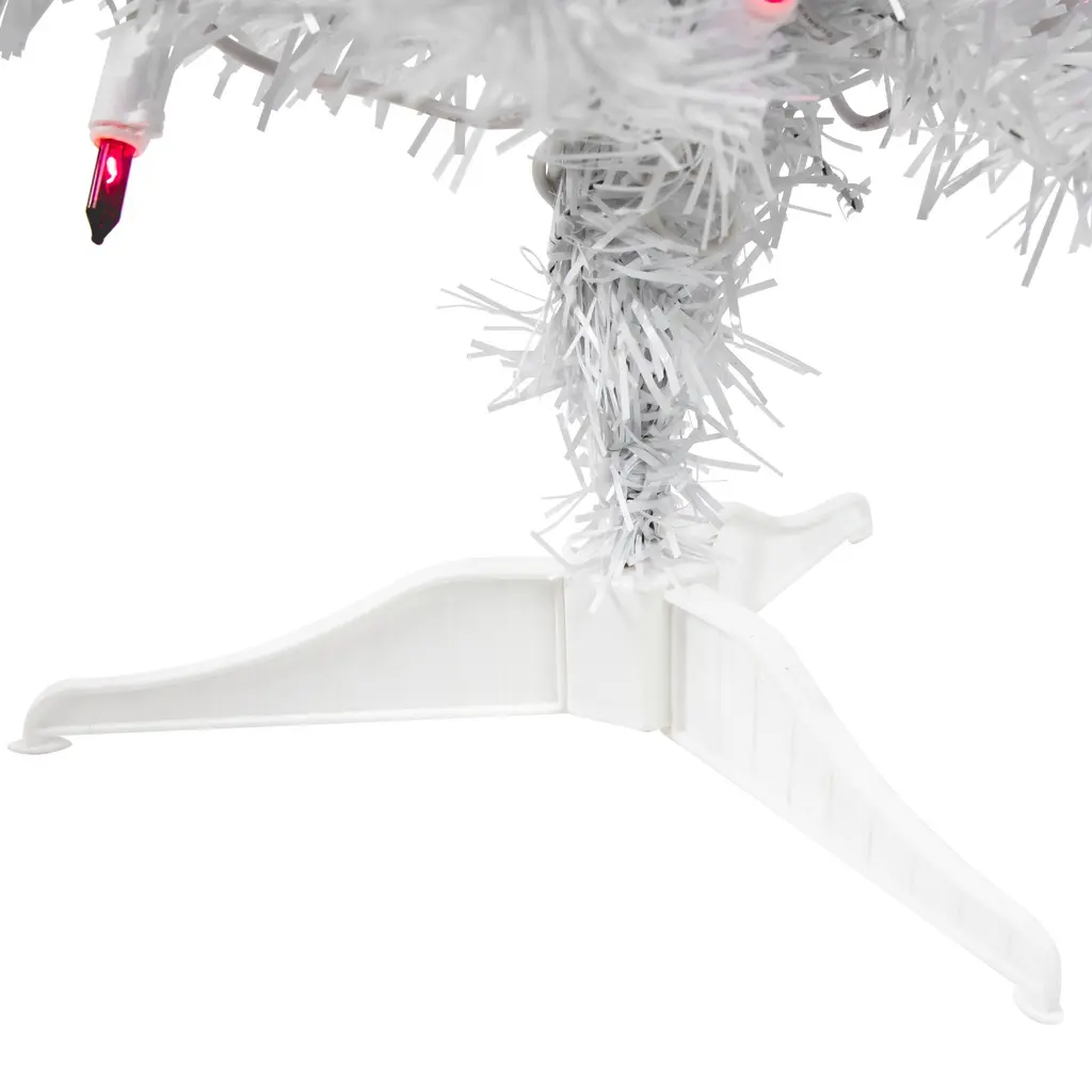 Transform your space into a winter wonderland with the beautiful Woodbury White Pine tree. It is a designer-inspired alternative to a traditional green tree with its dazzling white pine needles sure to reflect the light from the vibrant blue mini lights that it comes adorned with. The lush needles give the tree fullness but the slim profile makes it ideal for small spaces and allows it to fit perfectly in corners or on tabletops. Product features: Pre-lit with 15 blue lights Bulb size: mini Bulb type: incandescent 58 tips 1.5" wide branch tips 28" white lead cord Slim profile tree 2-piece easy assembly (including stand) Additional product features: Light sets on tree are UL listed for indoor or outdoor use however the tree itself is recommended for indoor use only If one bulb burns out the rest will stay lit Lights are equipped with Lamp Lock feature which makes them replaceable interchangeable and keep them from falling out Includes a white plastic tree stand Wire gauge: 22 120 volts 60 hertz .08 amps 9.6 watts Dimensions: 2' high (from the base of the stand to the top of the tree) 14" base diameter (at the widest point) Material(s): PVC/plastic/glass bulbs/wire Note: Branches are compressed for shipment and need to be fluffed out upon arrival to look like the photo.