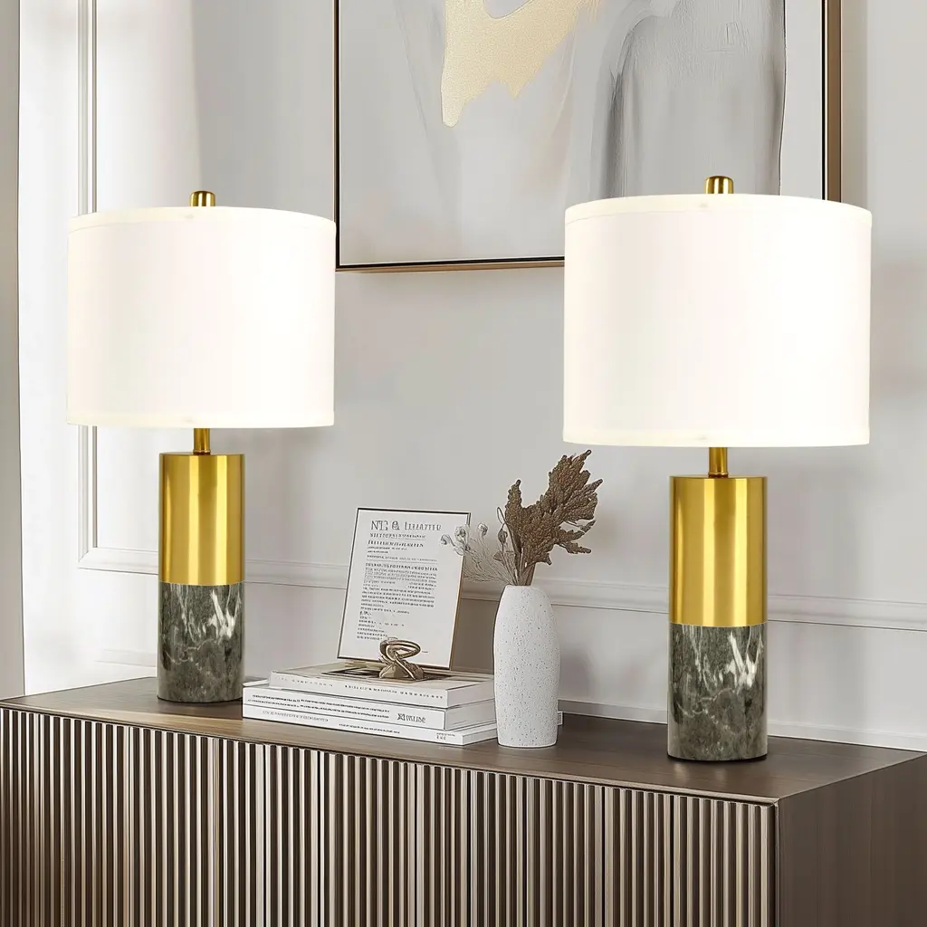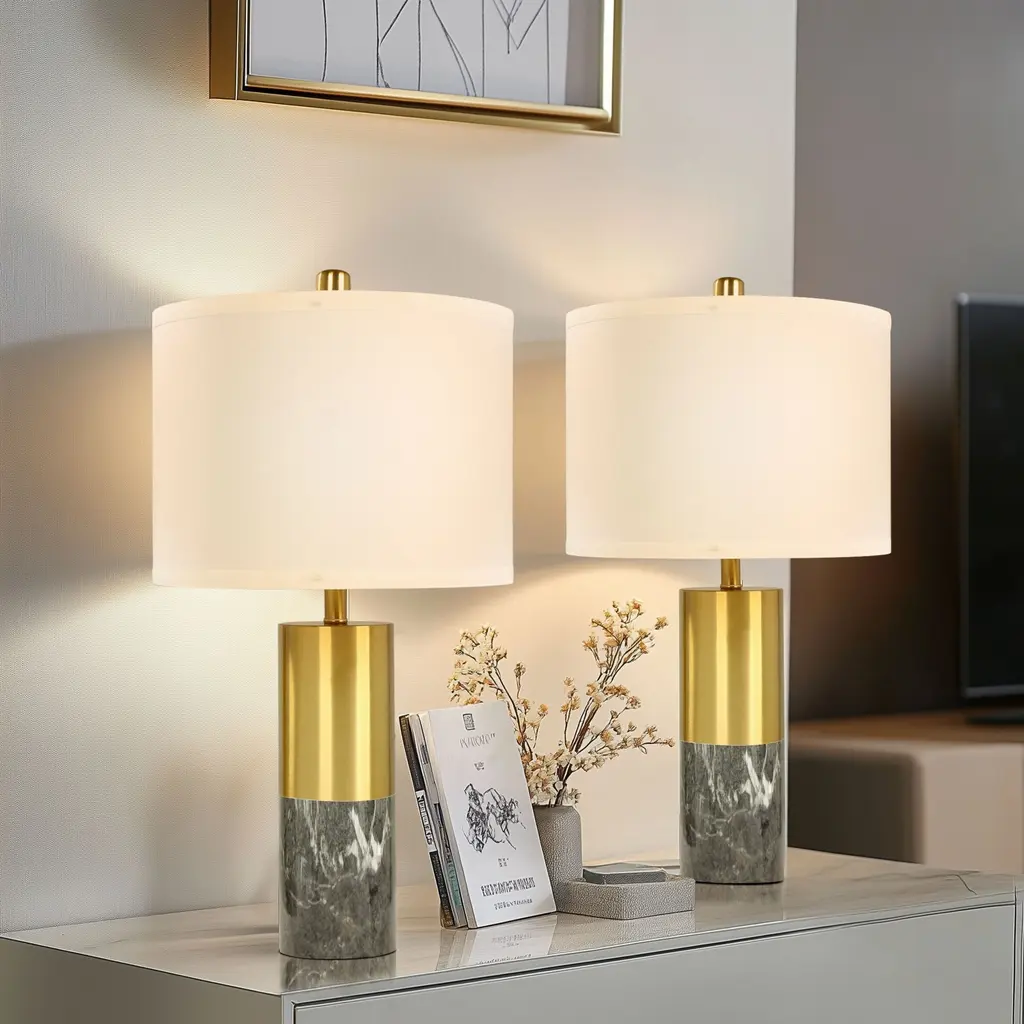 20" Modern Metal Marble Table Lamp, Bedroom Table Lamps Set Of 2 - Black
