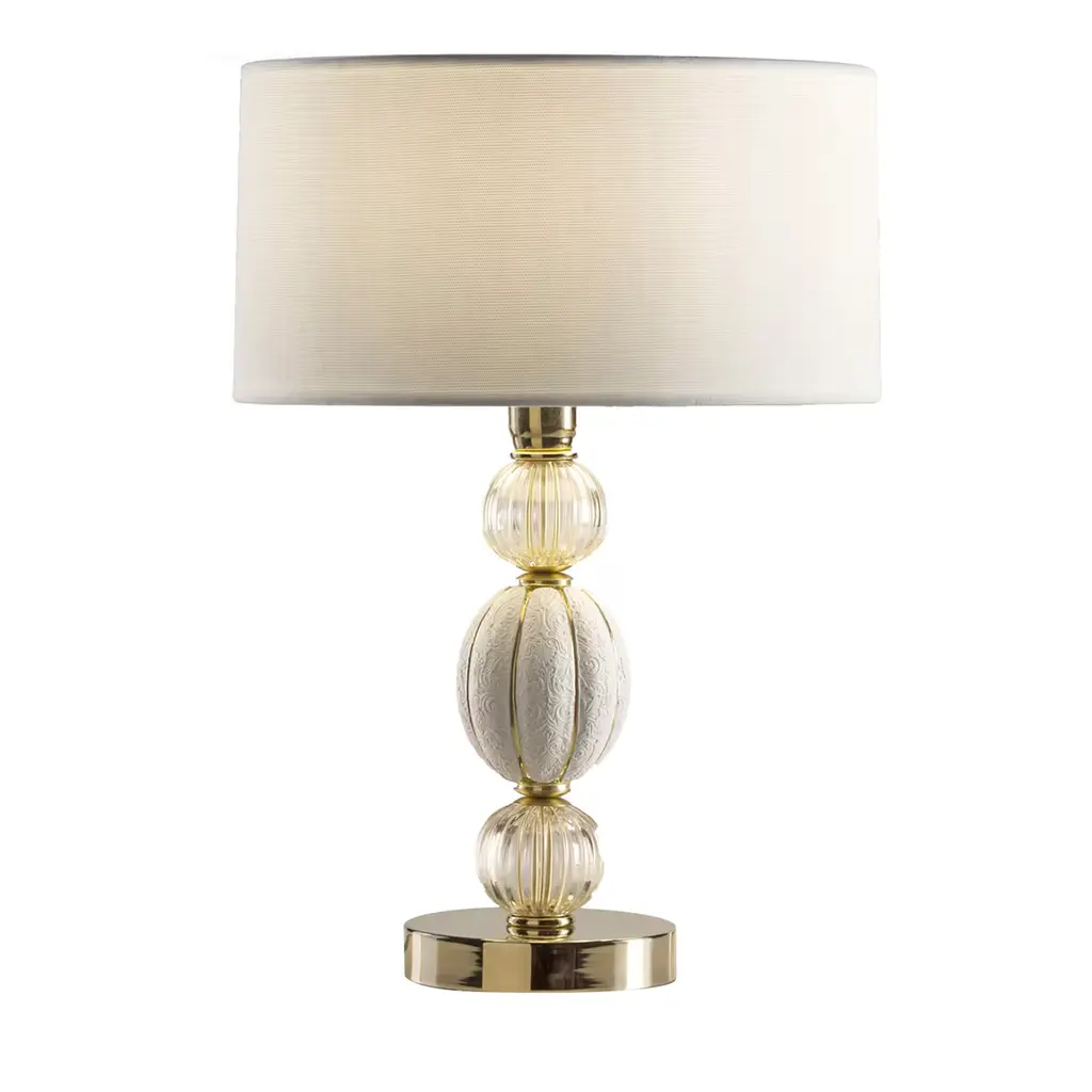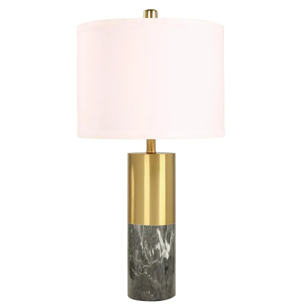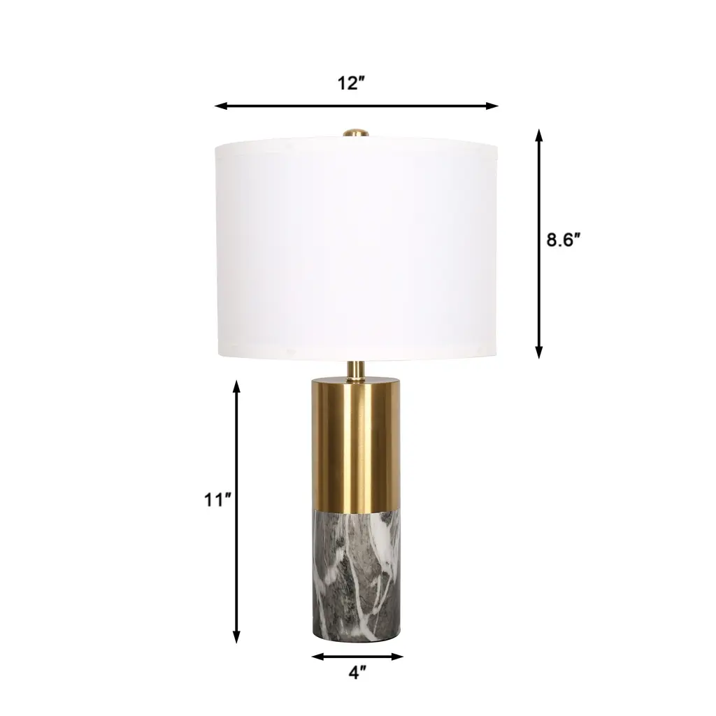 This lamp boasts a metalic lamp body adorned with exquisite marble patterns, showcasing an unparalleled sense of opulence. The lampshade is crafted from durable and pure white linen fabric, creating a striking contrast with metallic foundation. Light socket type is E26, needs one 60 watts light bulb on it in order to functionally use this fixture. It also adapts a convenient rotary switch, allows you to control the lighting as you wish. Place this exquiste lamp in your home to add some unique style.Feature:Product informations: