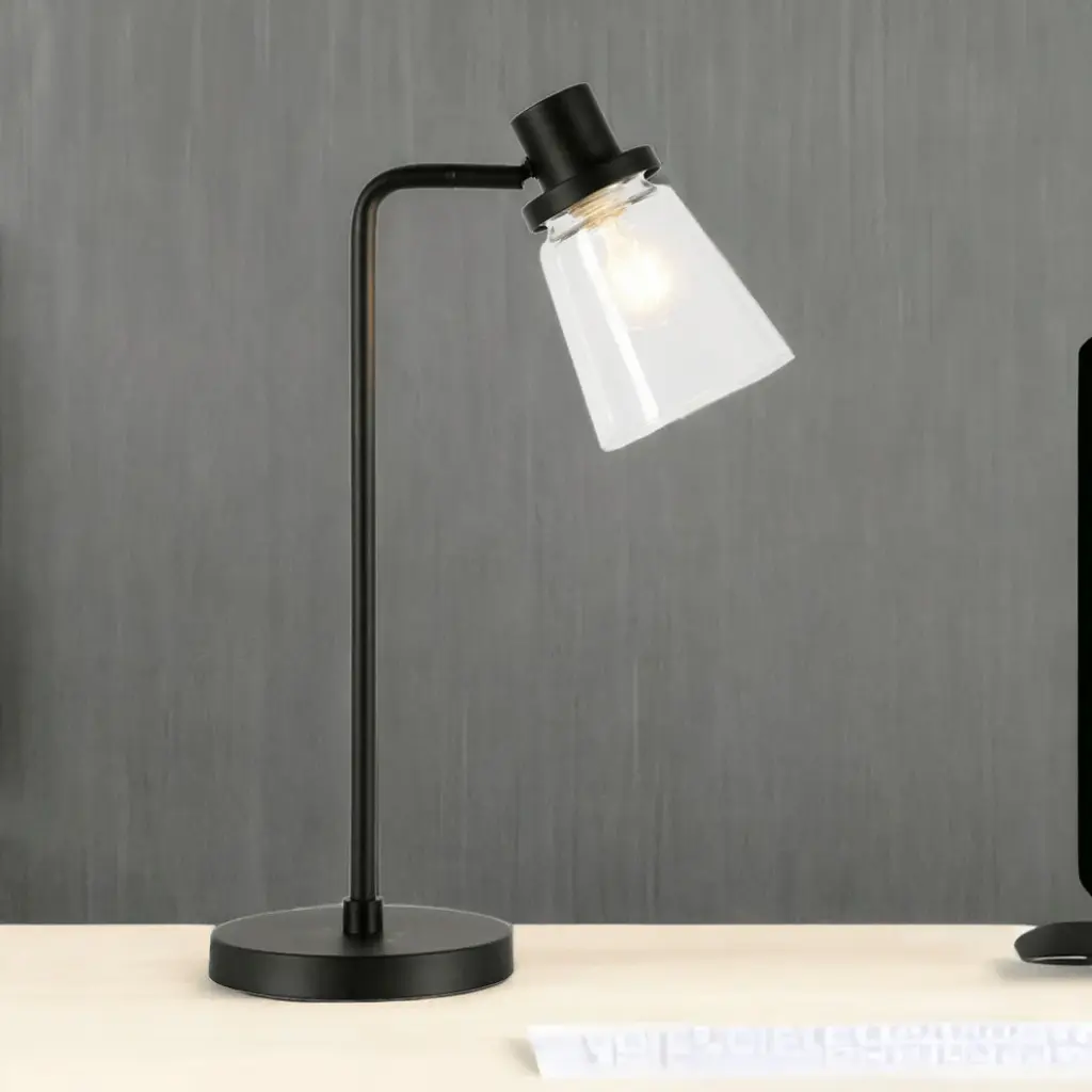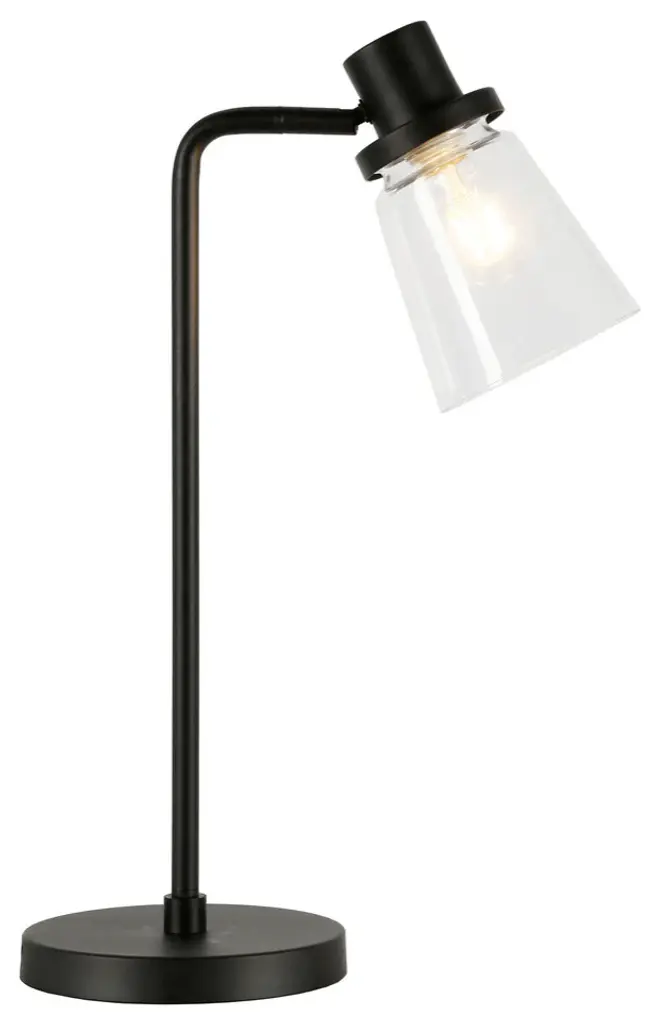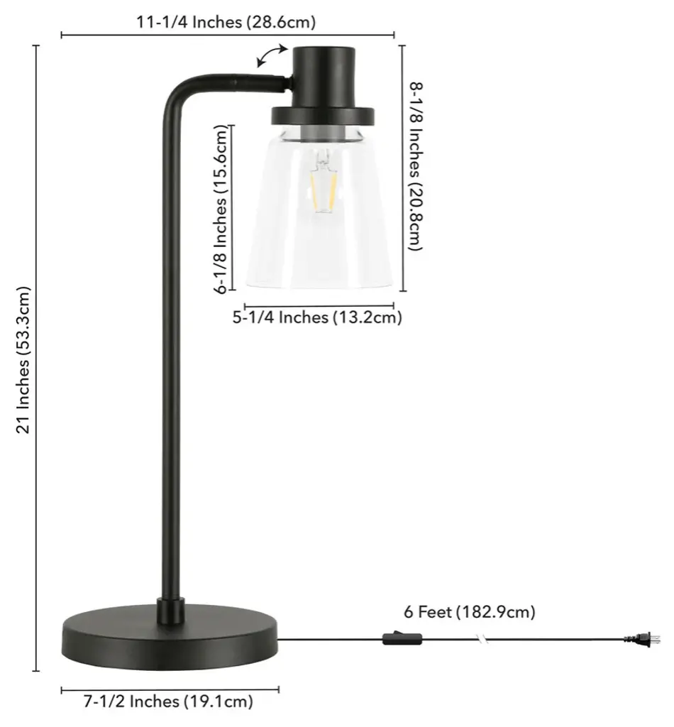Add a bright anchor to your room with this 21-inch black metal arched table lamp with clear cone shade. The base of this lamp is made of black metal. The clear shade has a cone shape and is made of glass, which makes it a perfect choice. A sophisticated take on a classic, this arched table lamp is a great option for a unique look. Use this lamp anywhere and elevate the look of the whole space. The perfect lamp to create just the right natural and soothing light in your space. 21-inch H x 7-inch W x 7-inch D