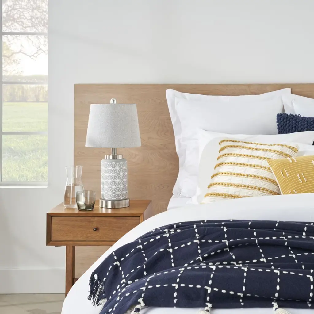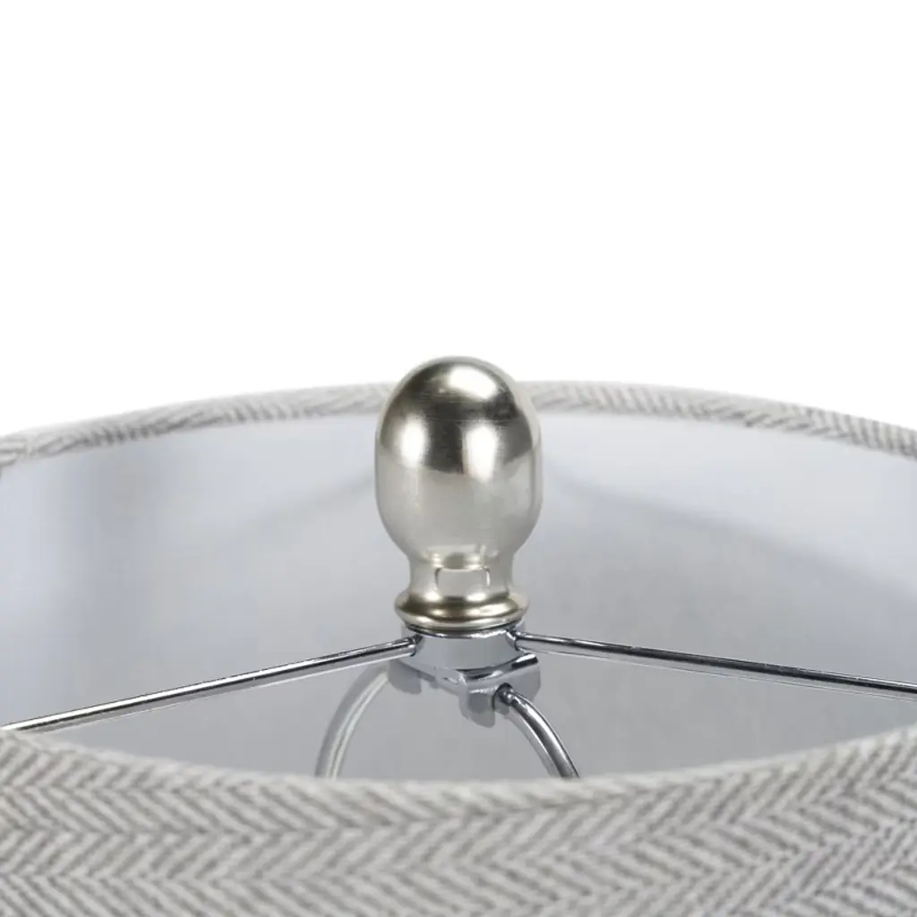 Cozy and classic, this contemporary table lamp brings mid-century modern charm to your favorite space. Made of sturdy concrete with metal accents, it features a geometric design that adds dimension without being overpowering. Topped with a grey, herringbone patterned drum shade that diffuses a cool, ambient glow.