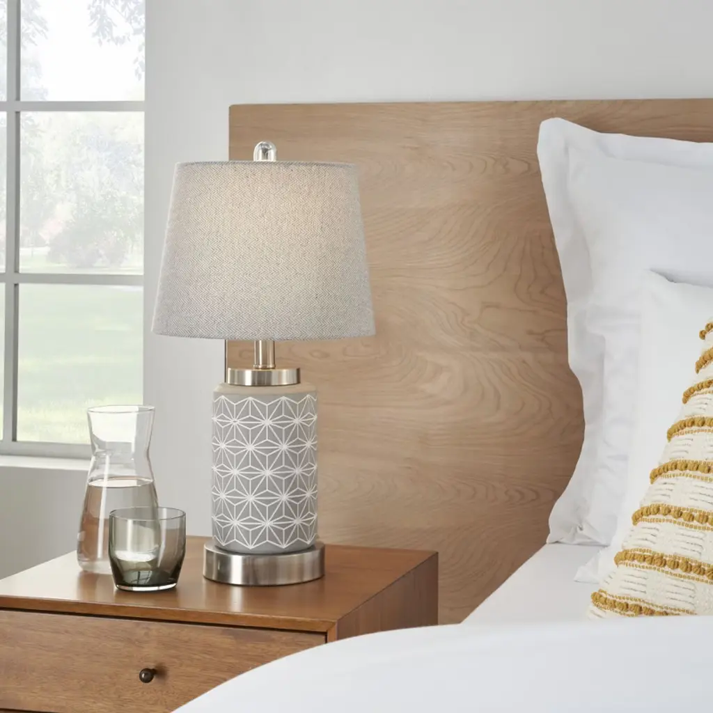 21" Grey/white Patterned Concrete Table Lamp - Nourison
