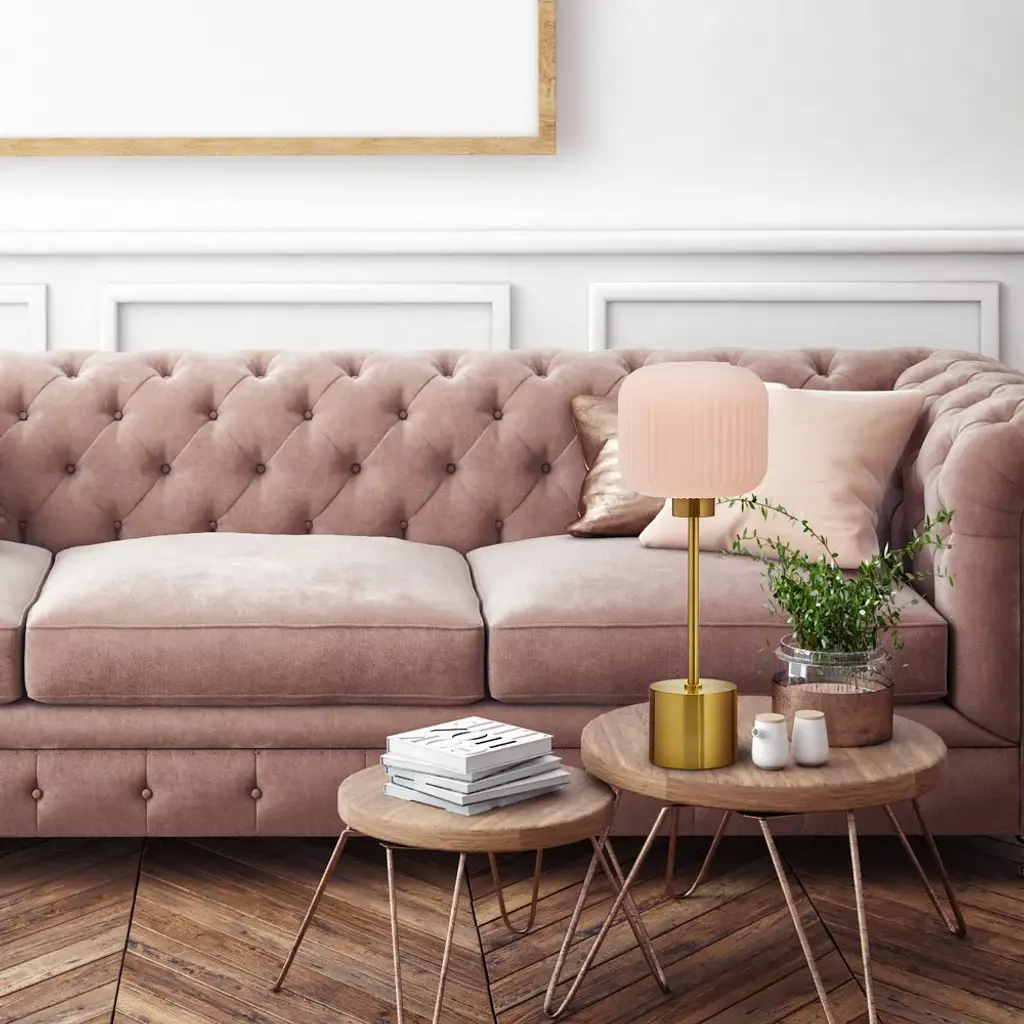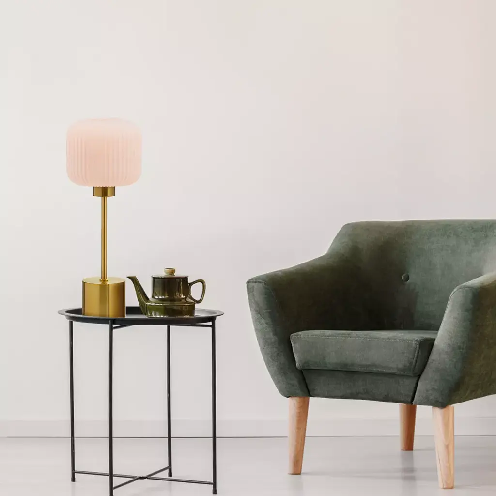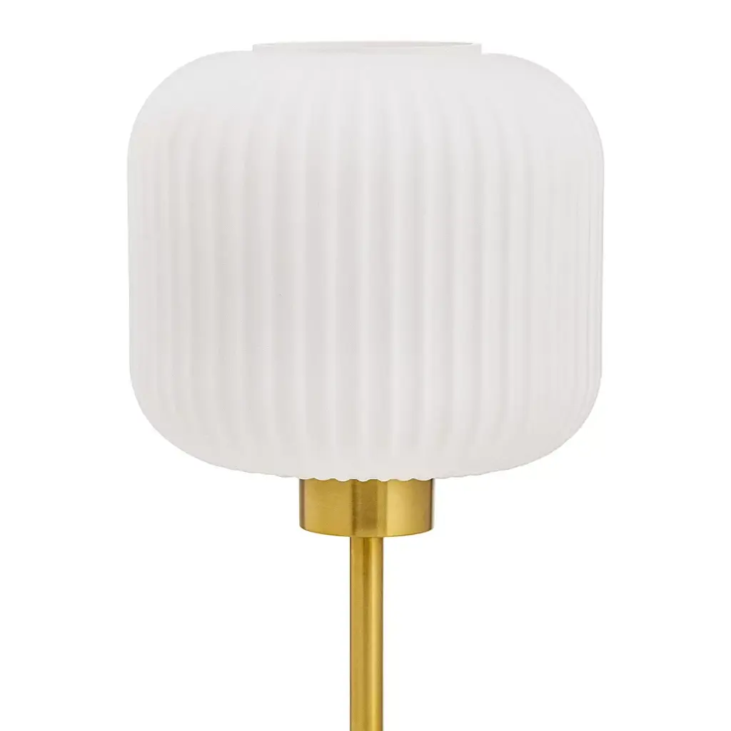 Add some cool, retro-style charm to your lighting with this 21" H Jasmine Globe Shade Table Lamp from River of Goods. Featuring a brushed gold-finish metal base and a white glass globe shade, this table lamp makes an easy pairing with other glam or retro decor. It requires one 40-watt E26 bulb (not included) and is also LED compatible, and the 60-inch cord allows for versatile placement. Place it on a side or console table in your living room, bedroom or foyer to instantly liven up the space.