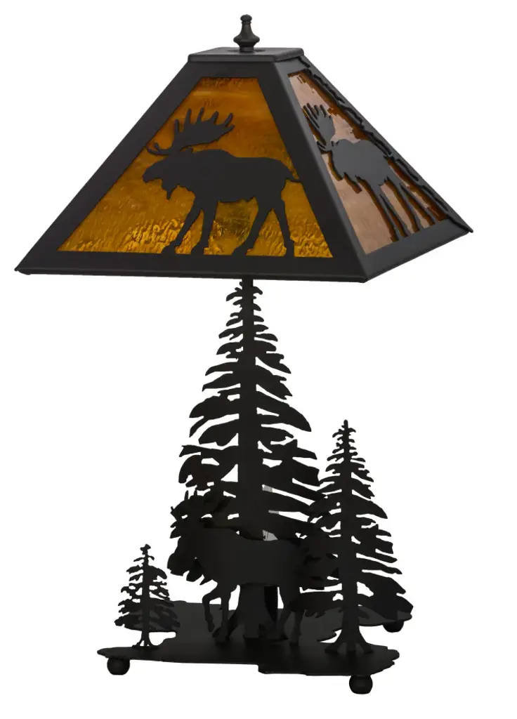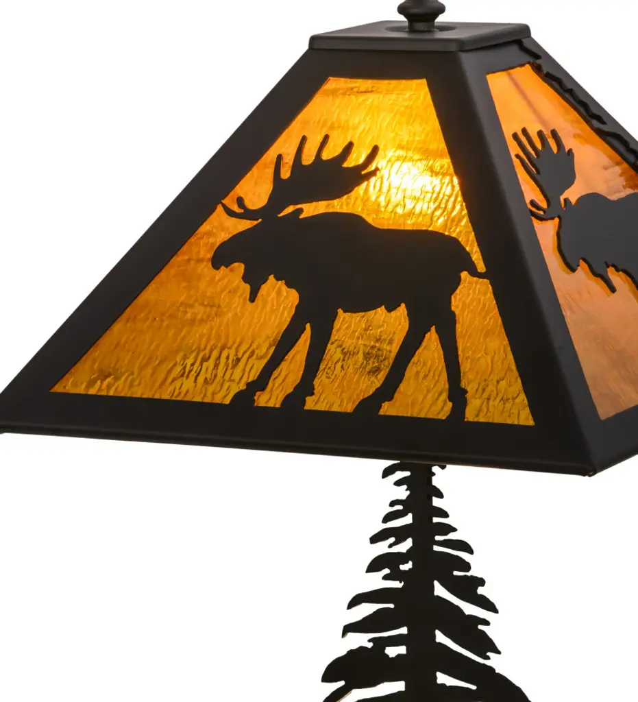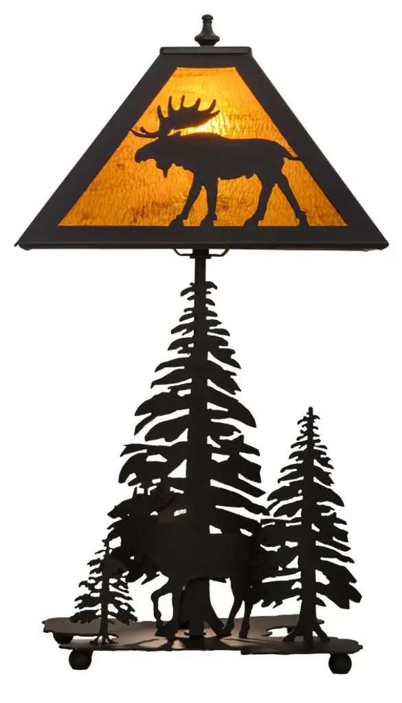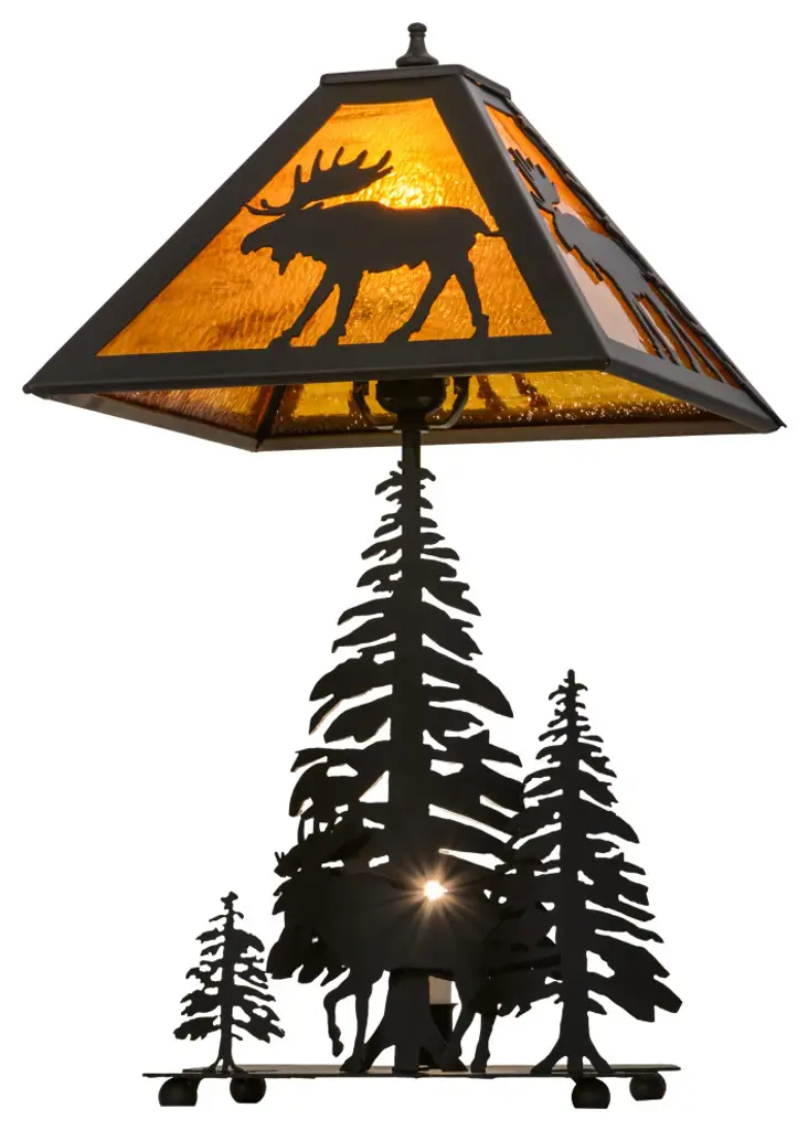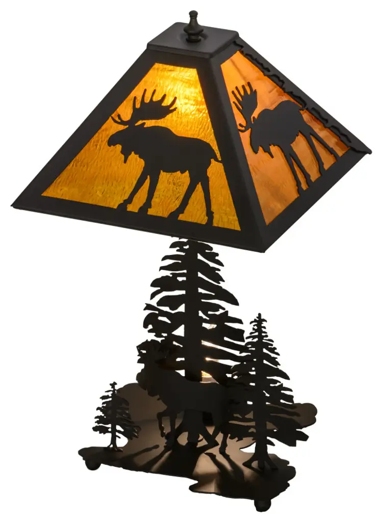 21h Moose Through The Trees W/lighted Base Table Lamp