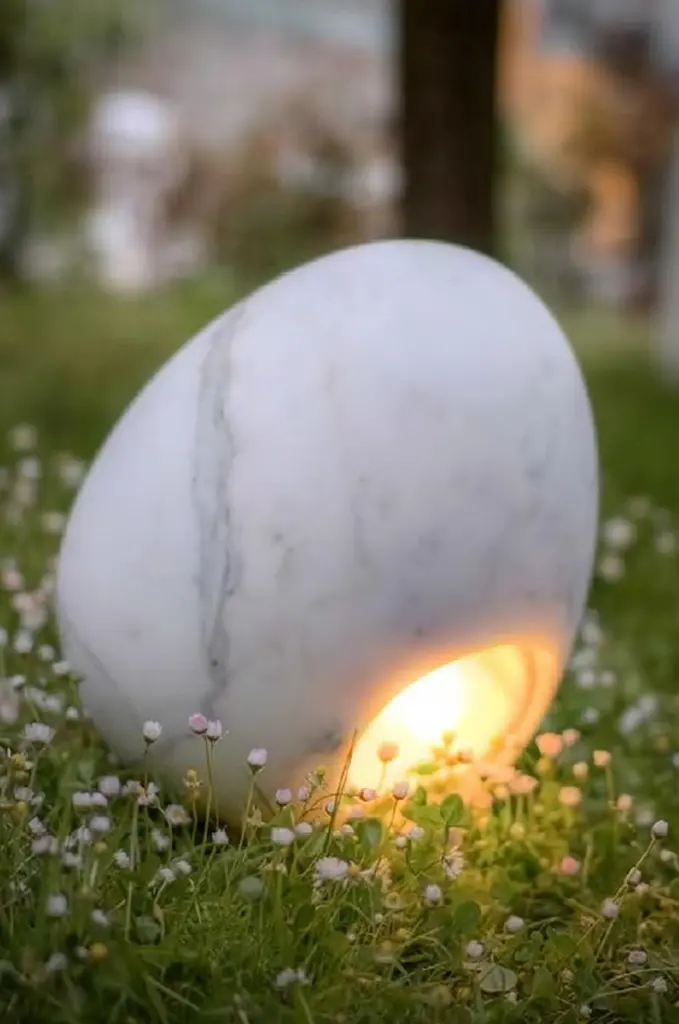 21st Century By Michele De Lucchi Marble Ovo Lamp In Statuario & Bardiglio