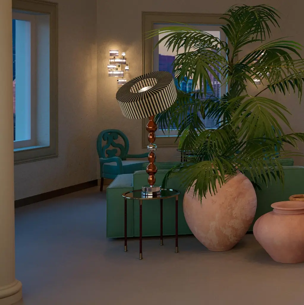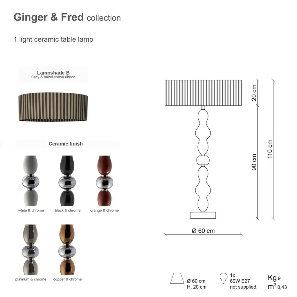 A simple and sophisticated choreography. Dancing, even in its formal essentiality. Ginger & Fred is a family made of standing lamps, table lamps and suspension lamps. Created in ceramic, an artisanal production which highlights a great artistry, that is synonymous with Made in Italy. Ginger & Fred is a rhythm: of shadows, of reflections, of luminous vibrations.