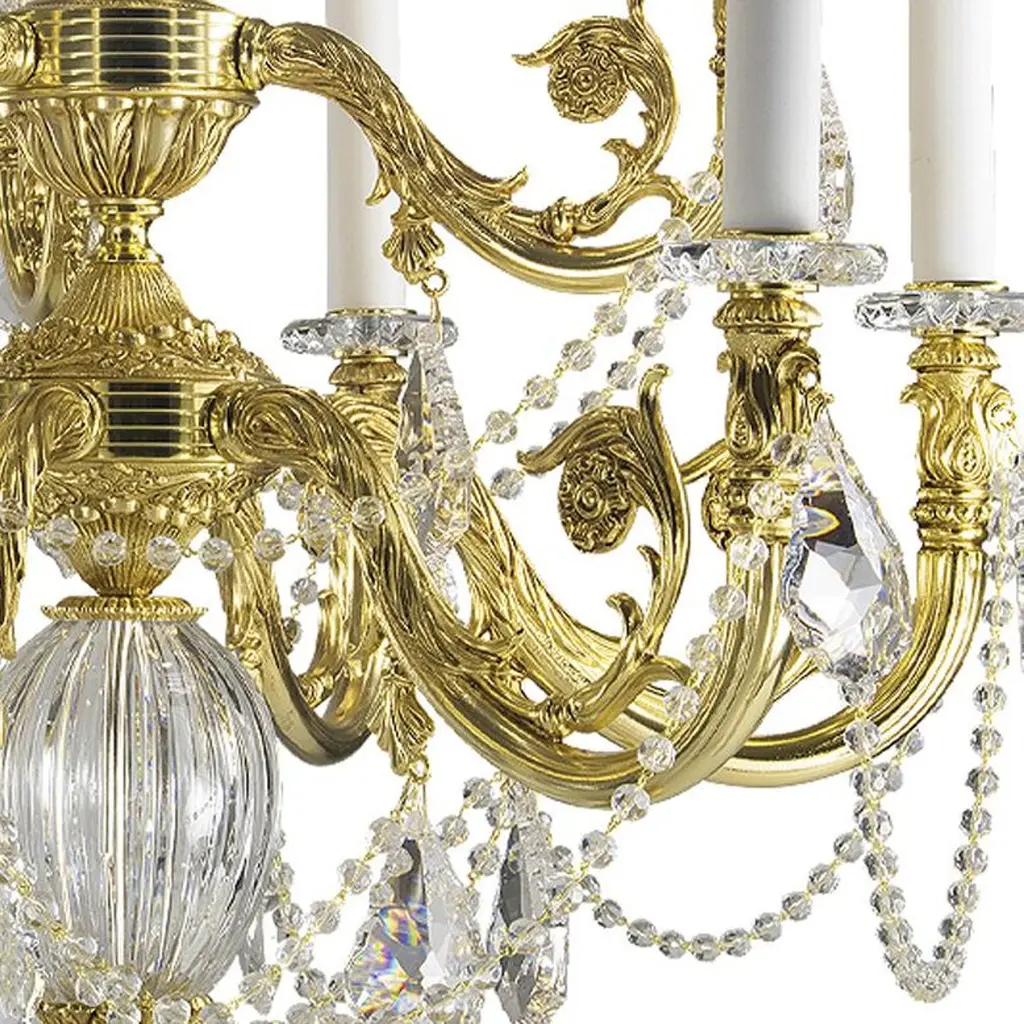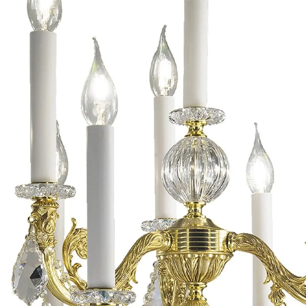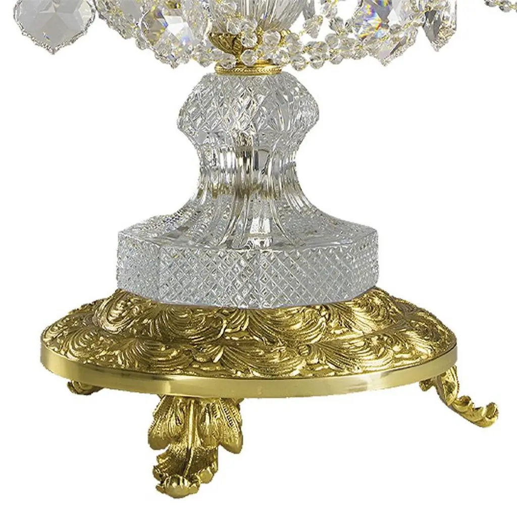 10-lights table lamp in handcut clear crystal and golden bronze. Each object is handcrafted and the care for every detail makes each item unique in its kind.The style of this table lamp is a modern reinterpretation of a table lamp from the second half of the 18th century in France.Also Oggetti d'Arte will follow with the same passion the request of the most qualified studies of interior architecture from around the world, helping them in achievement of their most ambitious projects.This table lamp, at the customer's request, can be made with different metal finishes and with different crystal colors so that it can be inserted in the best possible way within your furniture.This table lamp needs 10 bulbs max 40 watts E14.