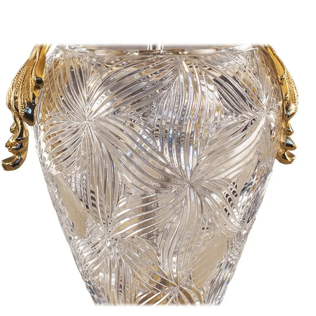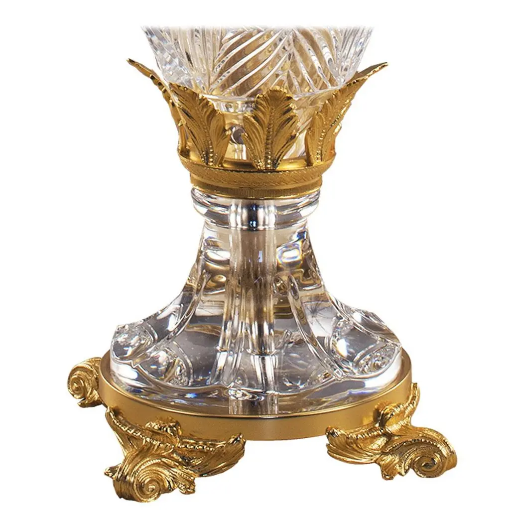21st-Century, Hand-Carved Crystal And Bronze Table Lamp In Style Luigi Xvi
