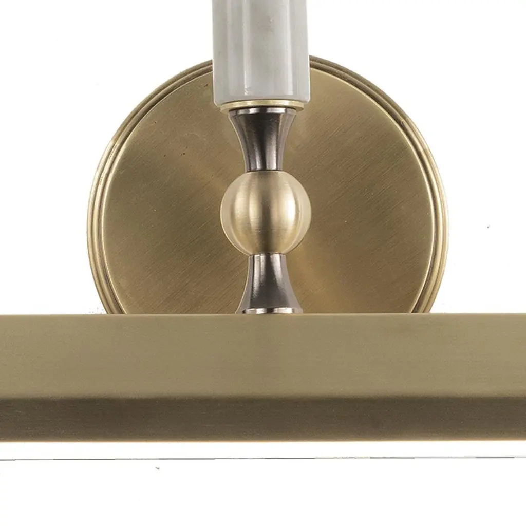 1-light applique in burnished brass and base in white veined marble. Each object is handcrafted and the care for every detail makes each item unique in its kind.This table lamp is contemporary in style. It has a simple and elegant design and thanks to LED technology it has excellent brightness. Also Oggetti d'Arte will follow with the same passion the request of the most qualified studies of interior architecture from around the world, helping them in achievement of their most ambitious projects.This applique, at the customer's request, can be made with different metal finishes and with different type of marble ( if you change the type of marble the price will be different) so that it can be inserted in the best possible way within your furniture.This applique needs strip led watt 12.5 220 v