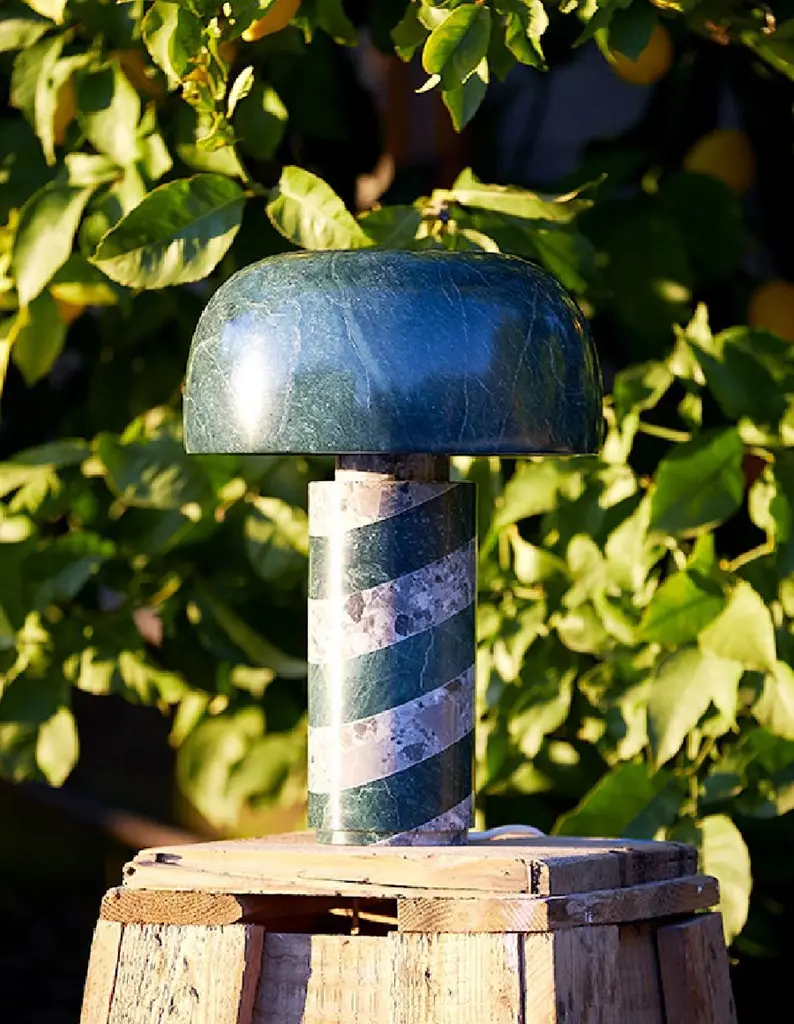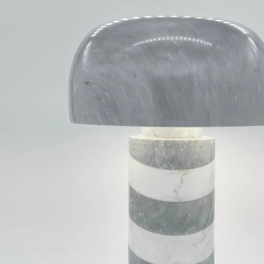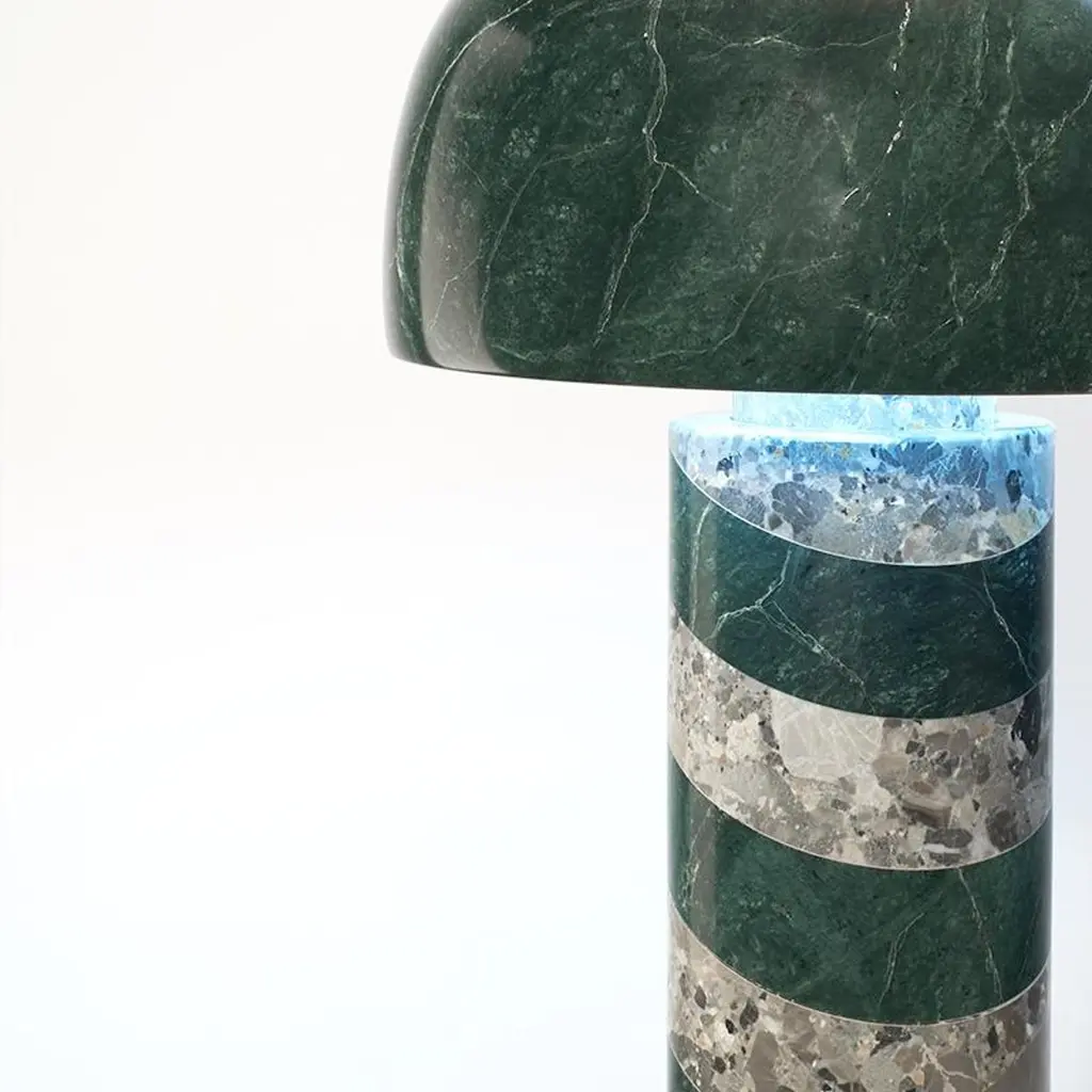 Mushrooom marble lamp verde Aver + San GimignanoBardiglio Perla + Bianco Statuario designed by Arch. Pierre Gonalons & produced by Up&Up for Excelsior Collection.