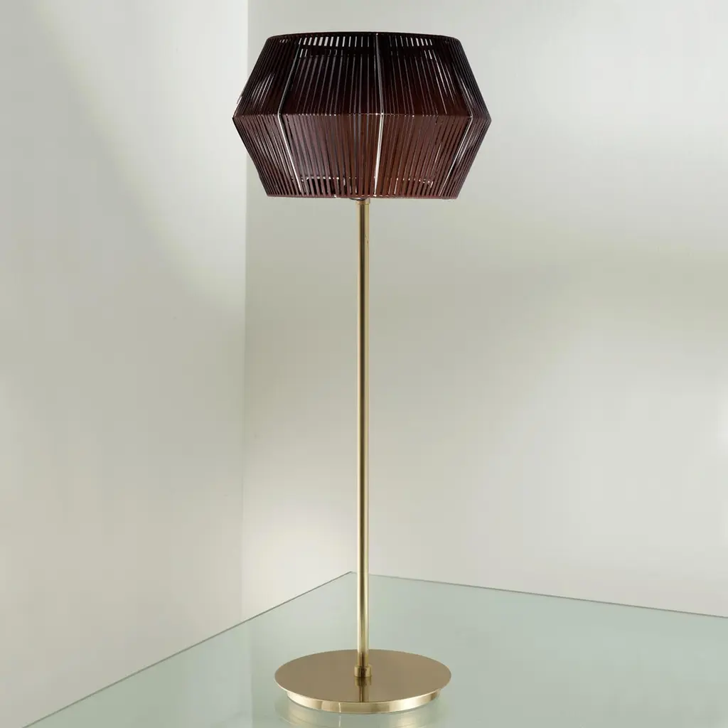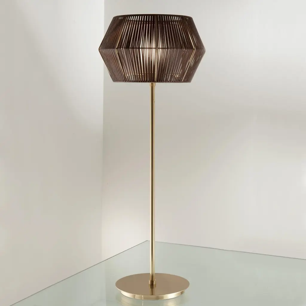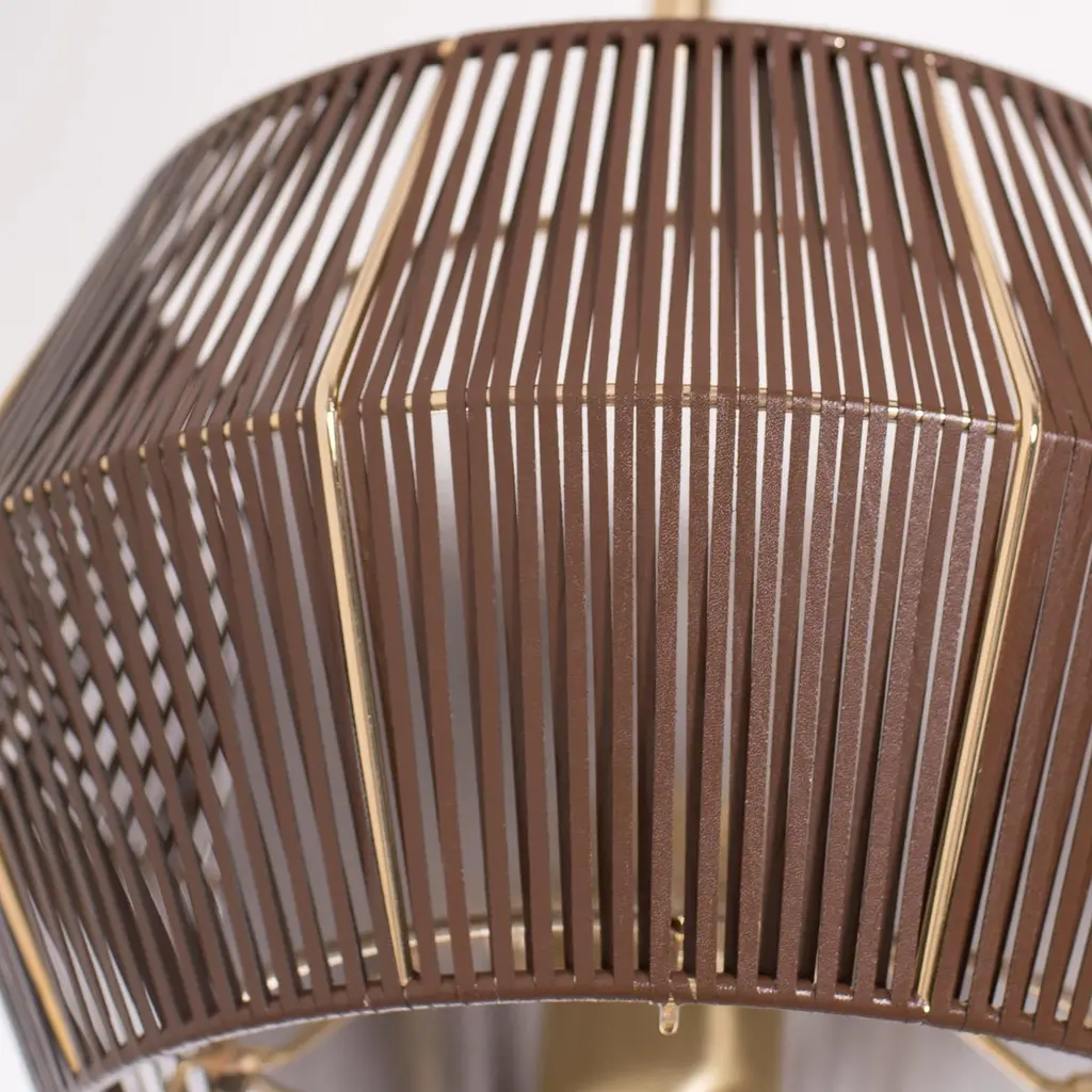 The peculiarity that makes this collection unique is the lampshade and its particular shape: available in brown eco leather and white string. A system of repeating proportions and modules, wisely assembled by the experts hands of the artisans. The collection consists of a large number of models developed horizontally and vertically.