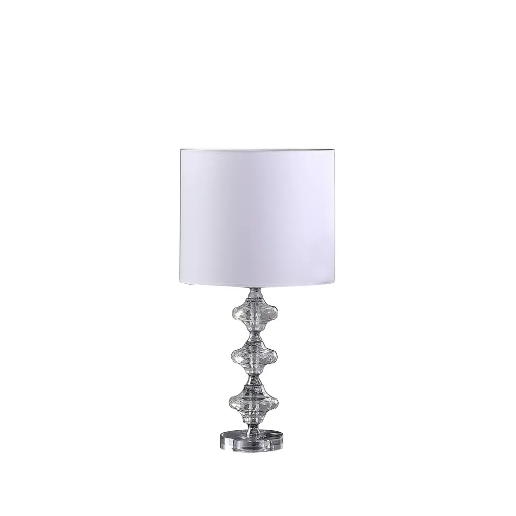 Place this in any room to give the room a translucent and decorative, this Geometric stacked prism crystal table lamp is bold and eye-catching in any setting. This lamp blends in perfectly with different rooms especially to vintage, contemporary, modern, and/or basic. The fine crystal body of this stacked crystal table lamp is stunning and rich with character. Atop a crystal base, this fixture is sure to grab attention when featured in any modern setting. The white cotton/linen drum shade puts the finishing touches on the design with a neutral presence. Let this classic modern crystal lamp bring the brightness in you.