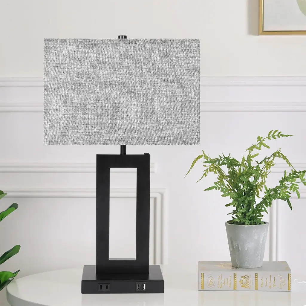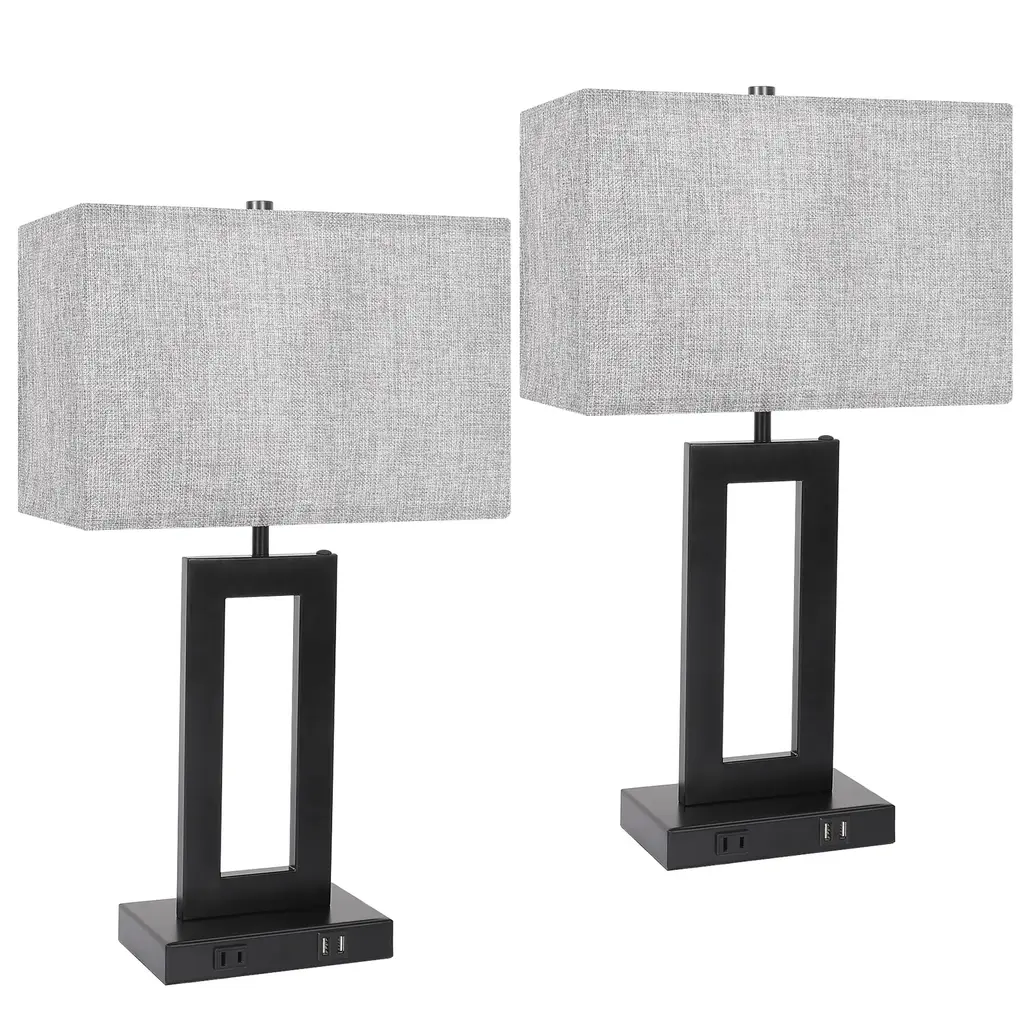 22" Gray Usb Table Lamp Set With Touch Control - 1 Pack - Gray/black