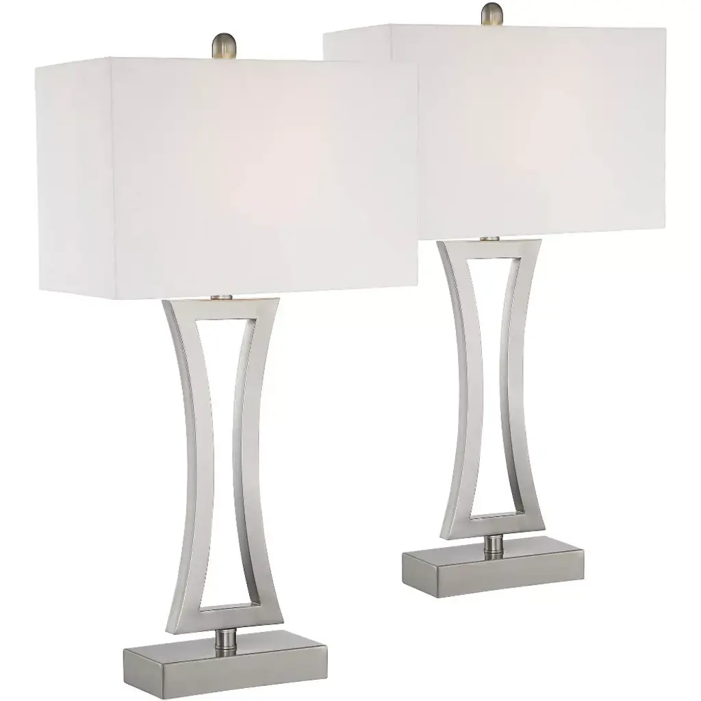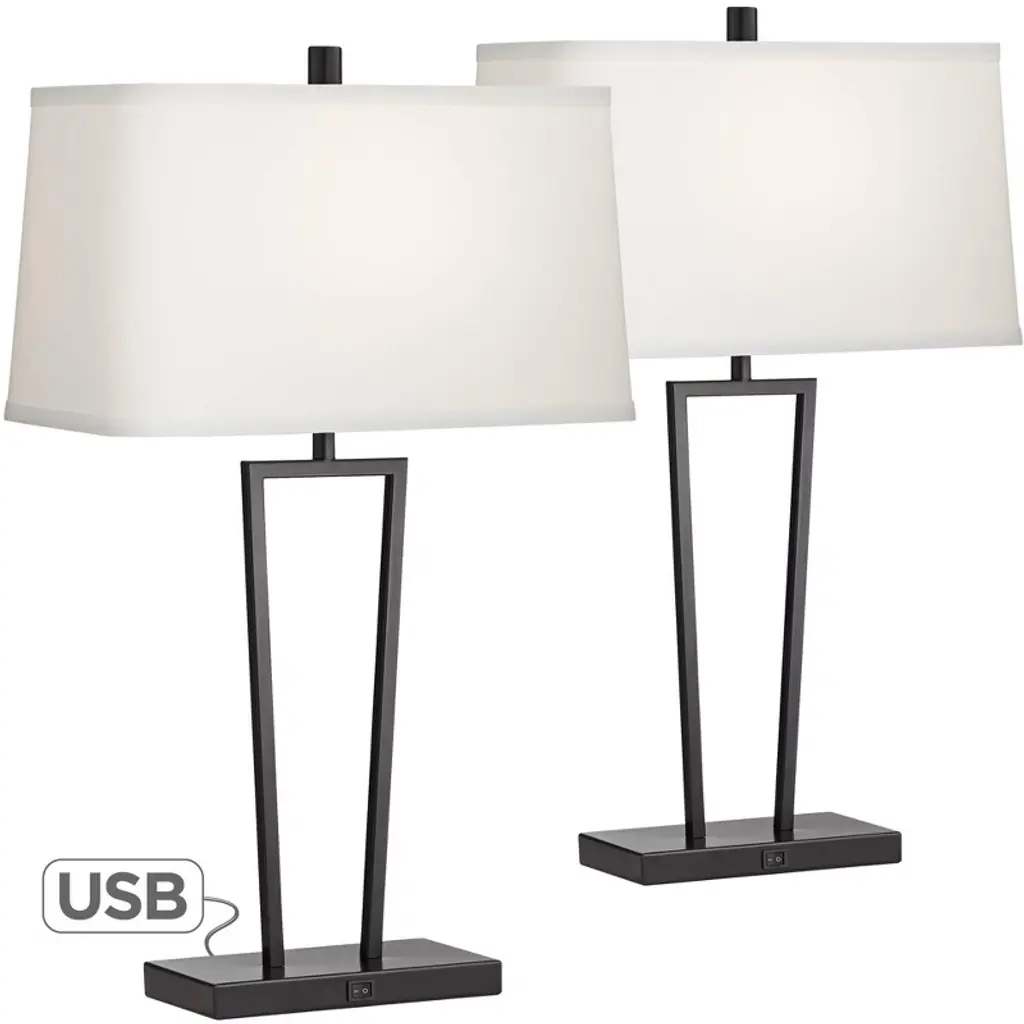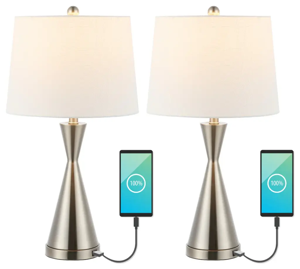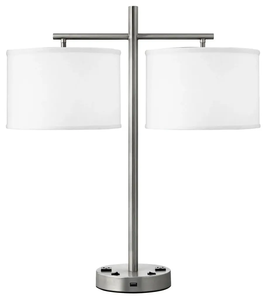 22" Gray Usb Table Lamp Set With Touch Control - 2 Pack - White/nickel