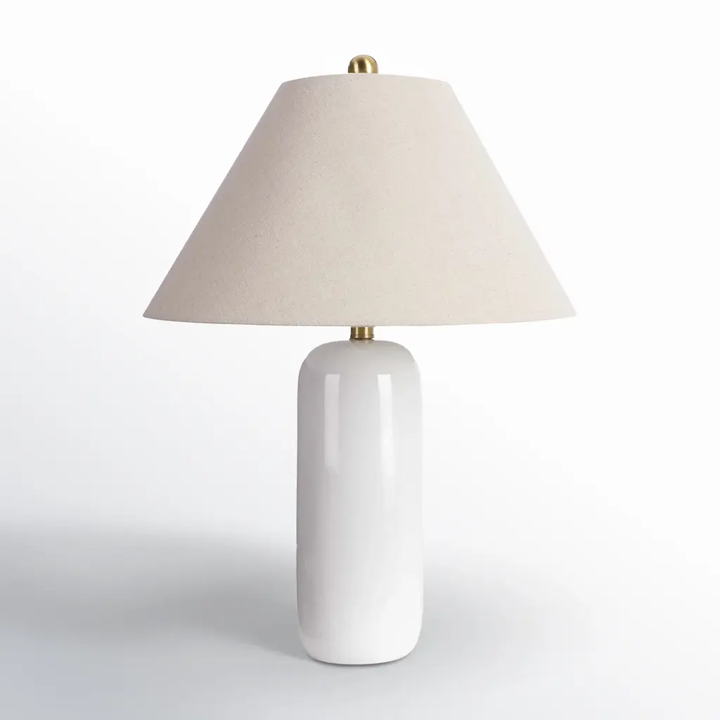 Enhance your space with the timeless charm of this transitional lamp, featuring a sleek white ceramic base and an beige fabric shade that provide a perfect blend of sophistication and style. With its clean lines and versatile design, this lamp complements a variety of interiors from traditional to coastal making it an ideal addition to your living room, bedroom, or entrway.