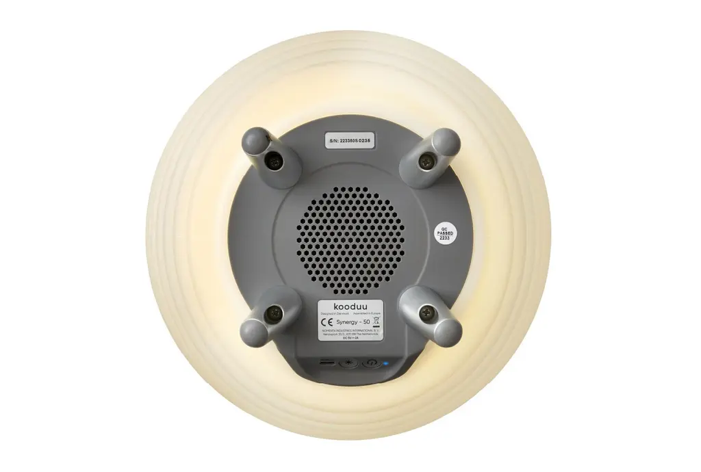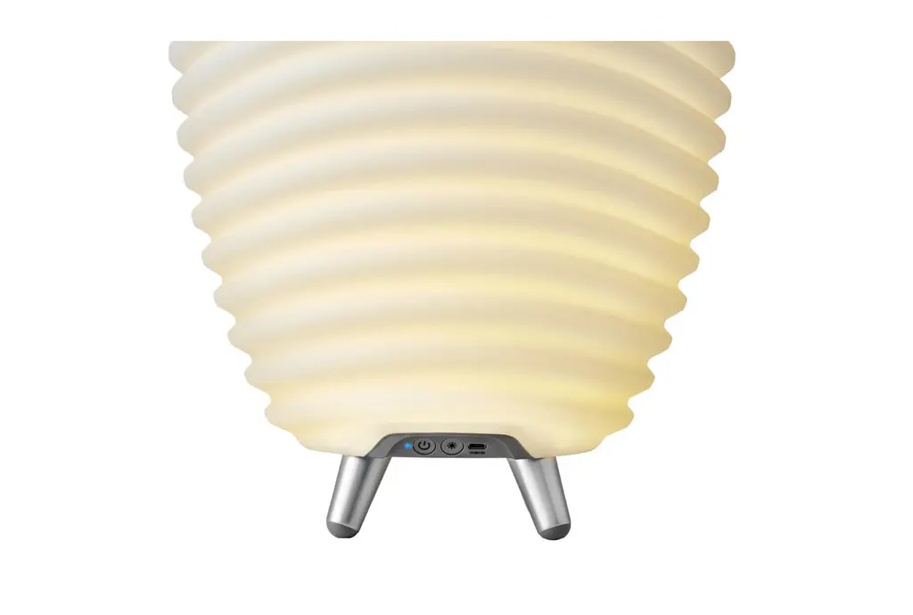 Introducing the 22" X 12" Synergy White Cordless rechargeable indoor/outdoor speaker Table Lamp. This versatile lamp combines modern technology with a sleek design to enhance any space, indoors or out. Featuring a dimmable LED light and Bluetooth speaker, it's perfect for creating ambiance wherever you need it.