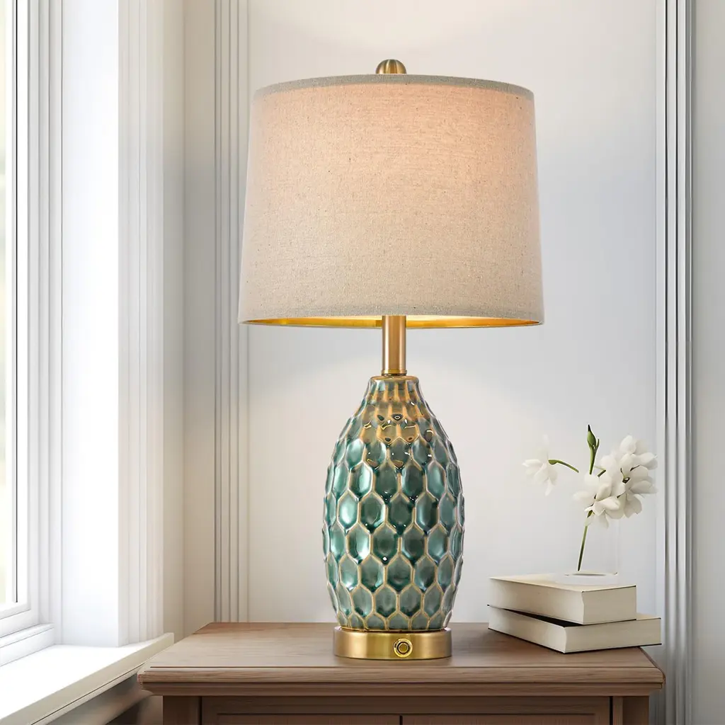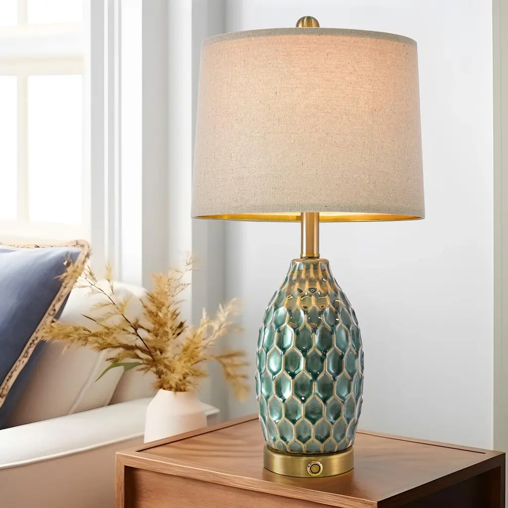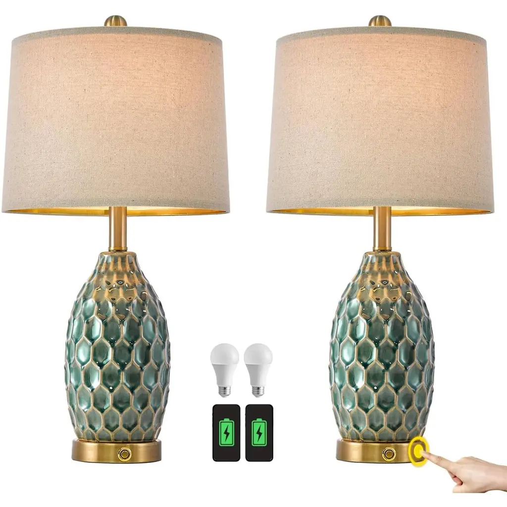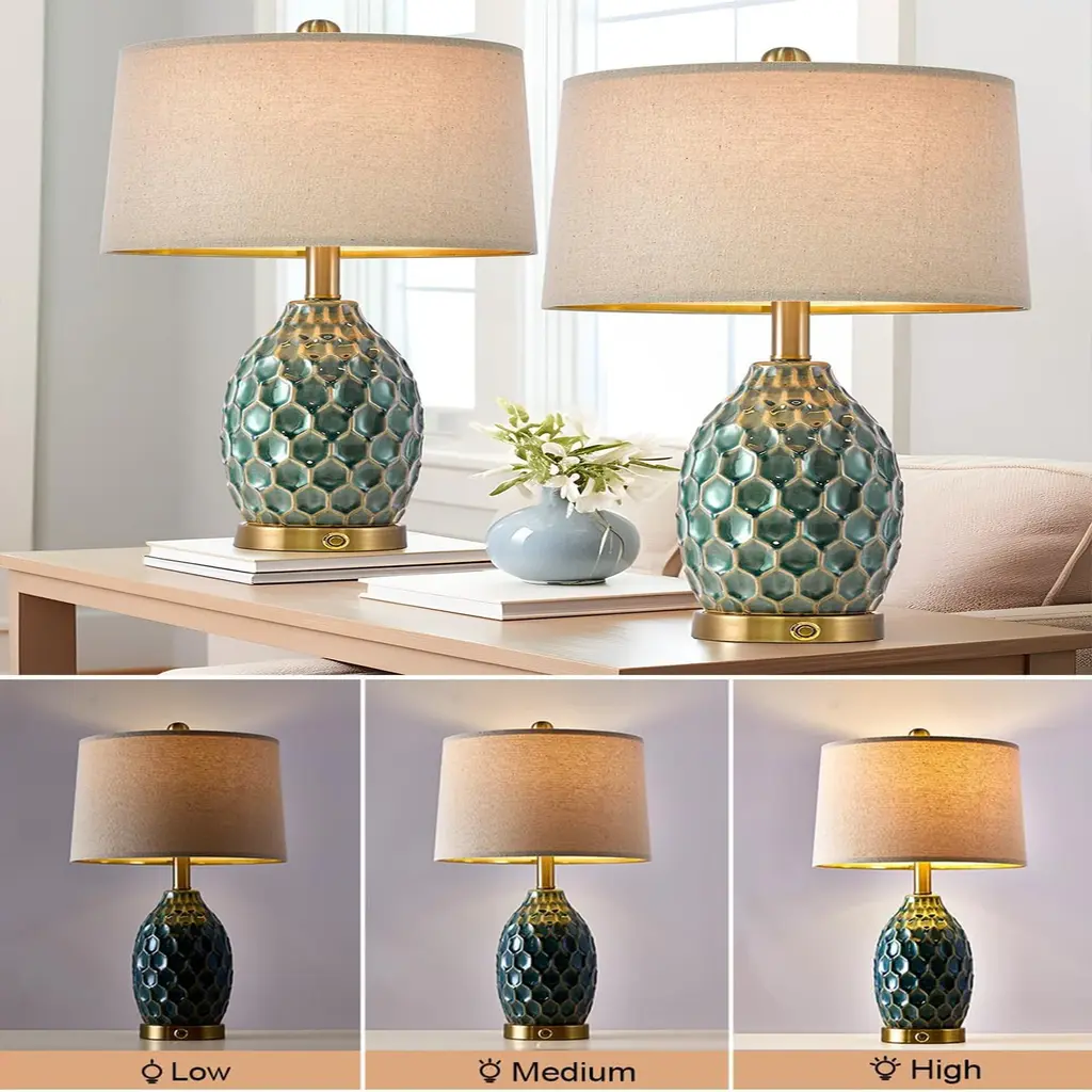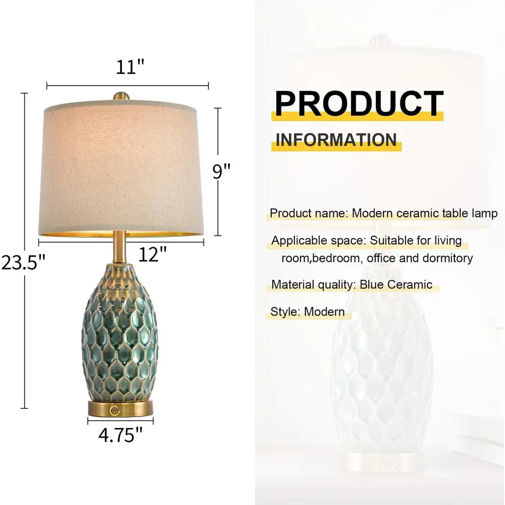 23.5" Modern Ocean Blue Ceramic 3-Way Dimmable Table Lamp Set Of 2 - 12"d X 12"w X 23.5"h - 12"d X 12"w X 23.5"h - Ocean Blue;touch Version